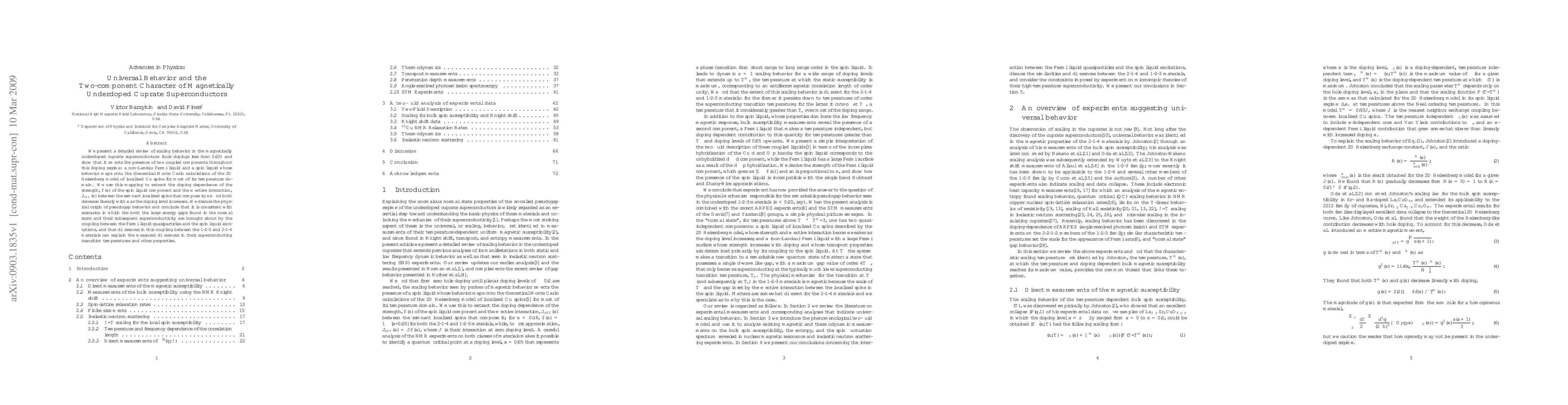 We present a detailed review of scaling behavior in the magnetically underdoped cuprate superconductors (hole dopings less than 0.20) and show that it reflects the presence of two coupled components throughout this doping regime: a non-Landau Fermi liquid and a spin liquid whose behavior maps onto the theoretical Monte Carlo calculations of the 2D Heisenberg model of localized Cu spins for most of its temperature domain. We use this mapping to extract the doping dependence of the strength, $f(x)$ of the spin liquid component and the effective interaction, J_eff(x) between the remnant localized spins that compose it; we find both decrease linearly with x as the doping level increases. We discuss the physical origin of pseudogap behavior and conclude that it is consistent with scenarios in which the both the large energy gaps found in the normal state and their subsequent superconductivity are brought about by the coupling between the Fermi liquid quasiparticles and the spin liquid excitations, and that differences in this coupling between the 1-2-3 and 2-1-4 materials can explain the measured differences in their superconducting transition temperatures and other properties.
