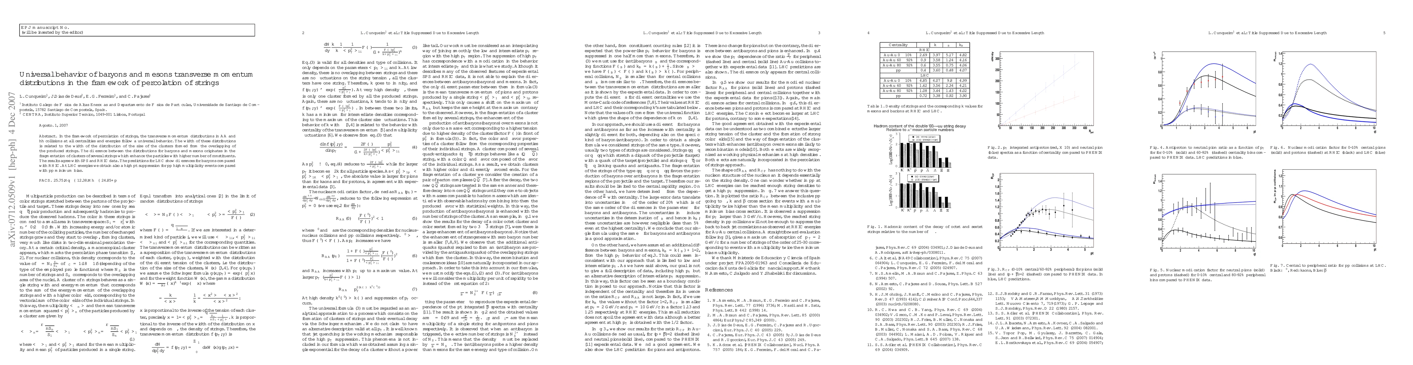 This paper explores the universal behavior of baryon and meson transverse momentum distributions in AA and hh collisions via string percolation theory, showing that distribution widths correlate with cluster size distributions. The differences between baryons and mesons arise from string cluster fragmentation, and the model aligns with SPS and RHIC data, predicting distinct LHC behavior for baryons and high pt suppression in high multiplicity pp events.
