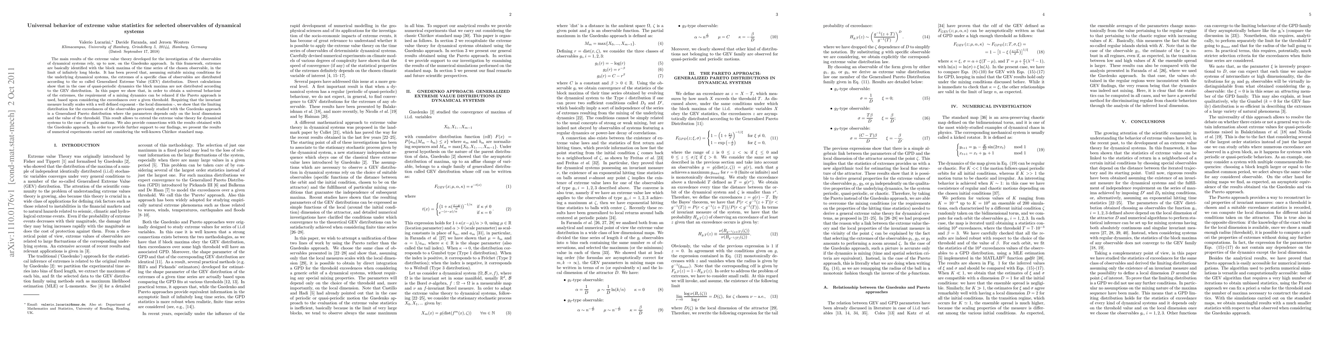 This paper extends extreme value theory for dynamical systems by demonstrating that the Pareto approach, based on exceedances over a threshold, can yield universal behavior of extreme values even without strict mixing conditions. It shows that the limiting distribution for these exceedances follows a Generalized Pareto distribution, dependent on local dimensions and threshold values, thus broadening the theory to include regular motions.
