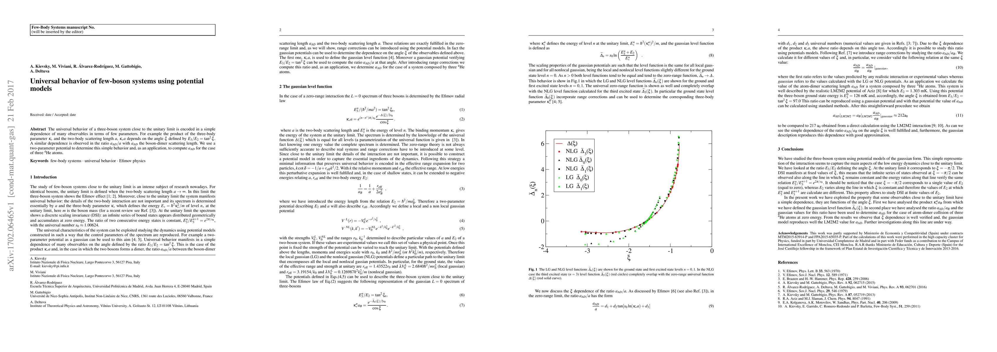 The universal behavior of a three-boson system close to the unitary limit is encoded in a simple dependence of many observables in terms of few parameters. For example the product of the three-body parameter $\kappa_*$ and the two-body scattering length $a$, $\kappa_* a$ depends on the angle $\xi$ defined by $E_3/E_2=\tan^2\xi$. A similar dependence is observed in the ratio $a_{AD}/a$ with $a_{AD}$ the boson-dimer scattering length. We use a two-parameter potential to determine this simple behavior and, as an application, to compute $a_{AD}$ for the case of three $^4$He atoms.