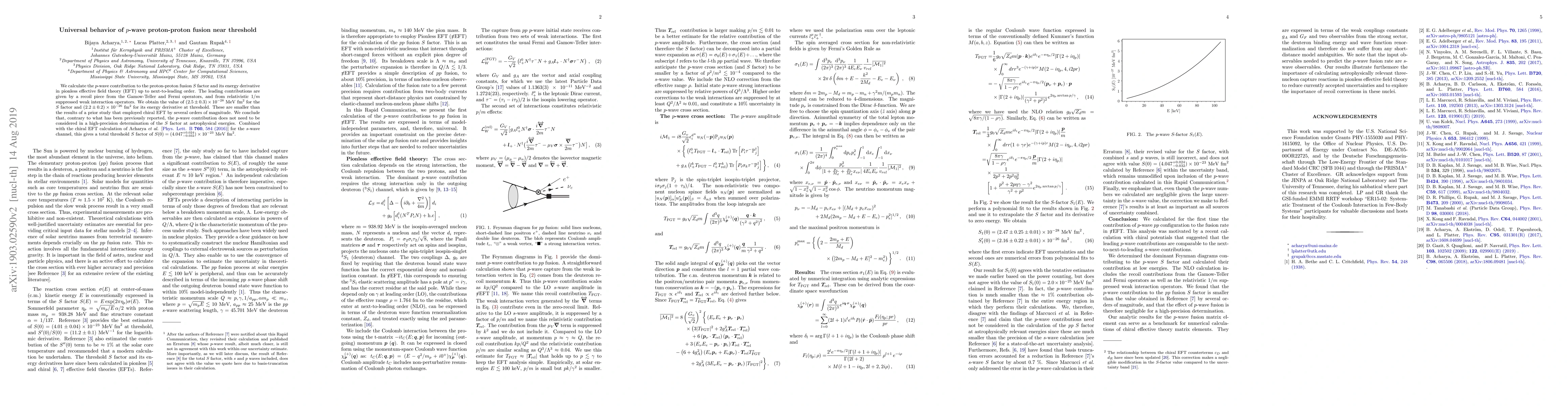 This paper calculates the $p$-wave contribution to the proton-proton fusion $S$ factor and its energy derivative in pionless EFT, finding values significantly smaller than previous results. It concludes that the $p$-wave contribution is negligible for high-precision determinations of the $S$ factor, leading to a total threshold $S$ factor of $(4.047\pm0.034) \times 10^{-23}~\mathrm{MeV~fm^2}$.