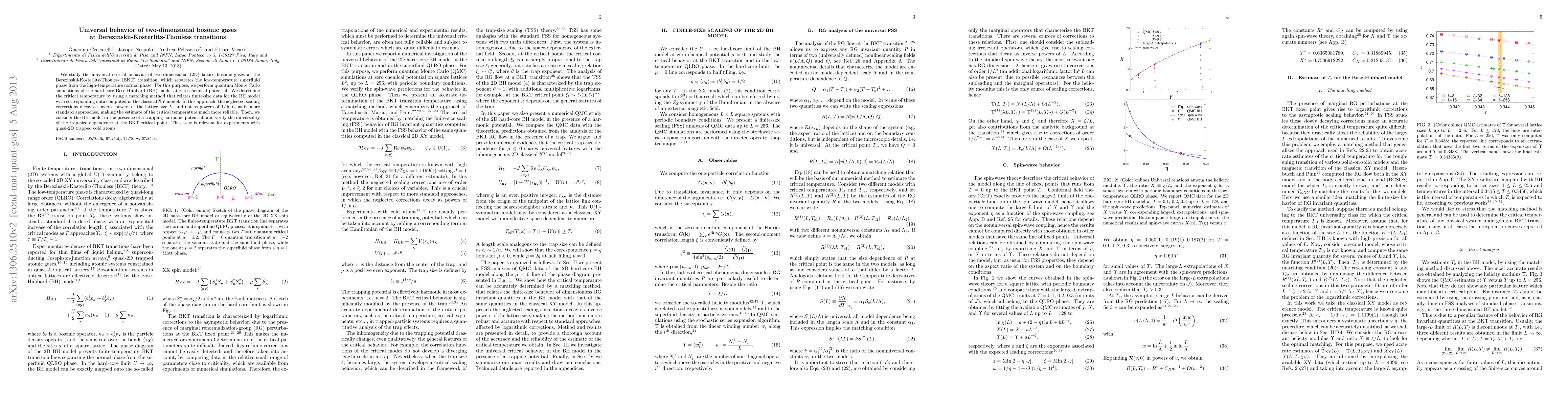 This paper investigates the universal critical behavior of two-dimensional bosonic gases at the Berezinskii-Kosterlitz-Thouless transition using quantum Monte Carlo simulations of the hard-core Bose-Hubbard model. The critical temperature is determined with a novel matching method, enhancing reliability, and the universality of trap-size dependence at the BKT critical point is verified, relevant for quasi-2D cold atom experiments.
