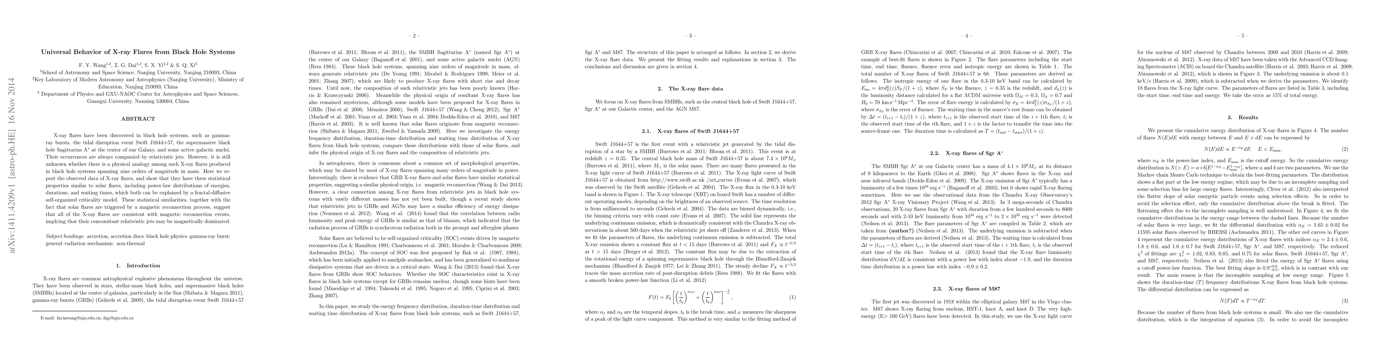 This paper reports that X-ray flares from various black hole systems exhibit statistical properties similar to solar flares, suggesting a common underlying mechanism of magnetic reconnection. The findings imply that the relativistic jets accompanying these flares may be magnetically dominated.