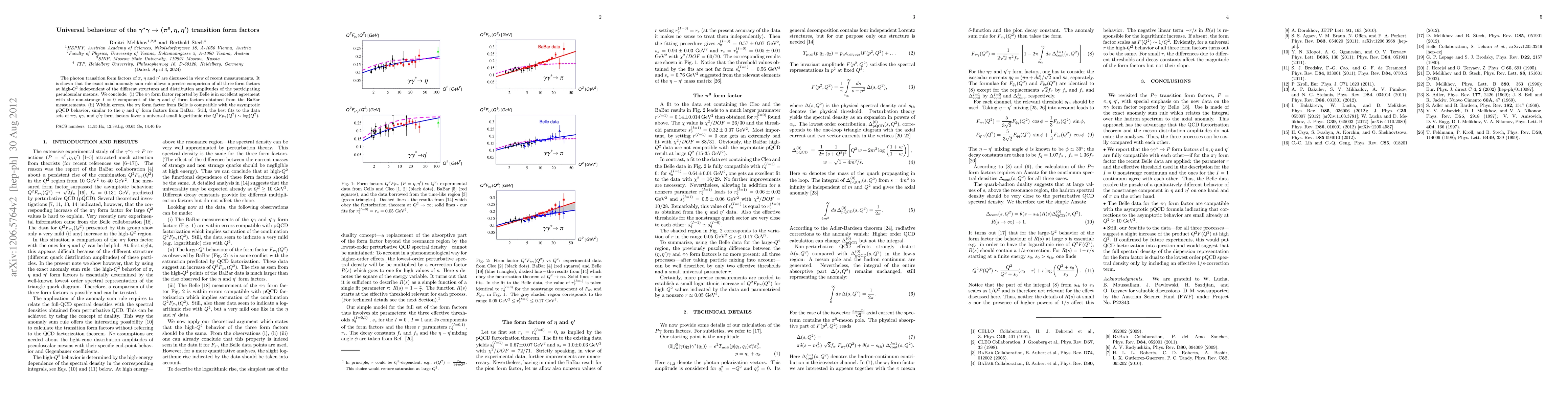 This paper examines the photon transition form factors for $\pi$, $\eta$, and $\eta'$, revealing that the axial anomaly sum rule enables precise comparisons of these form factors at high $Q^2$. The study finds that the $\pi\gamma$ form factor from Belle aligns well with the non-strange I=0 components of $\eta$ and $\eta'$ form factors from BaBar, confirming a universal small logarithmic rise in the form factors.