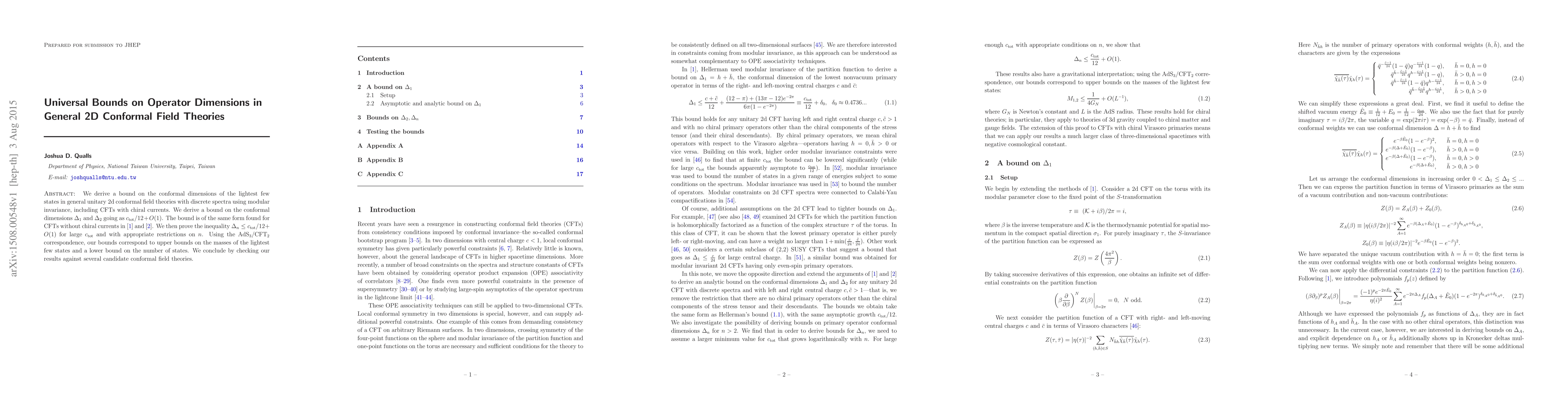 This paper establishes universal bounds on the conformal dimensions of the lightest states in 2D conformal field theories (CFTs), using modular invariance. The derived bounds are $\Delta_1$ and $\Delta_2$ proportional to $c_{\rm tot}/12 + O(1)$, aligning with previous results for CFTs without chiral currents.
