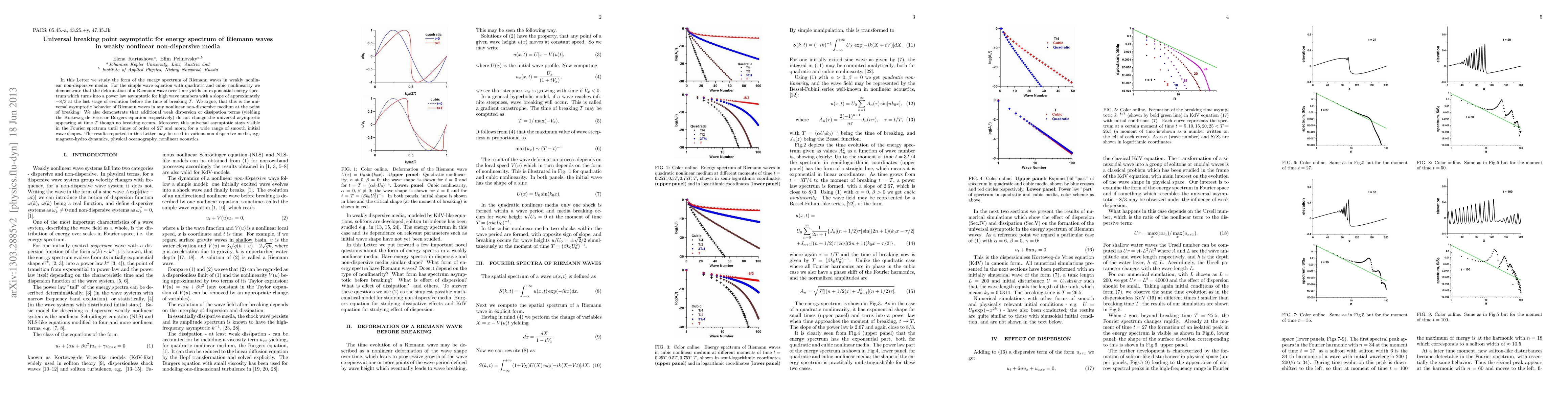 This paper investigates the energy spectrum of Riemann waves in weakly nonlinear non-dispersive media, showing that the spectrum follows an exponential decay transitioning to a power law with a slope of -8/3 just before breaking. The findings suggest a universal asymptotic behavior applicable to various fields like magneto-hydro dynamics and physical oceanography.