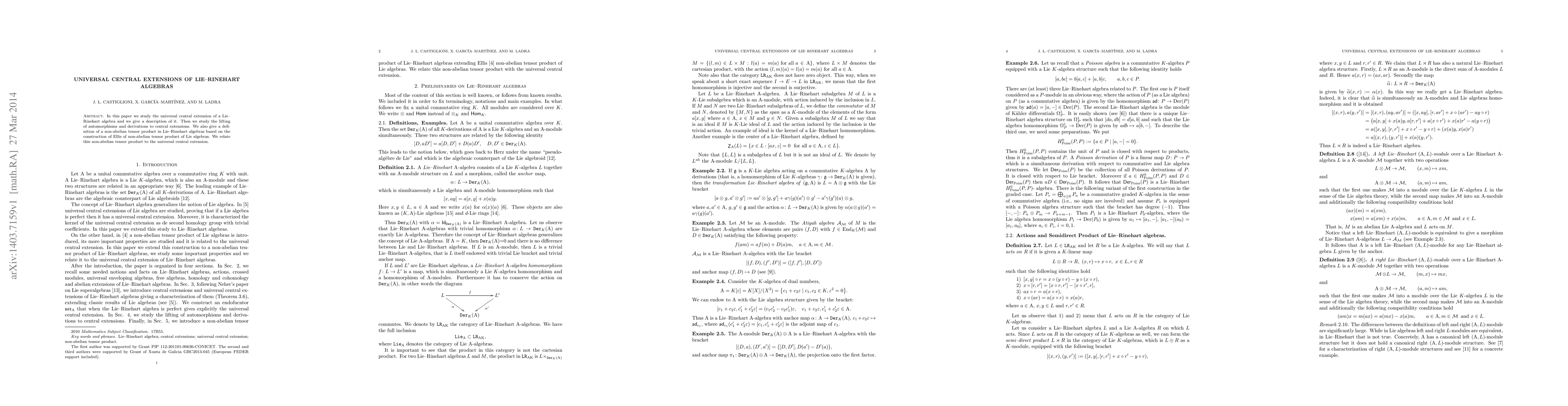 This paper investigates the universal central extension of Lie-Rinehart algebras and describes its structure. It also explores how automorphisms and derivations can be lifted to these central extensions and introduces a non-abelian tensor product for Lie-Rinehart algebras, linking it to the universal central extension.