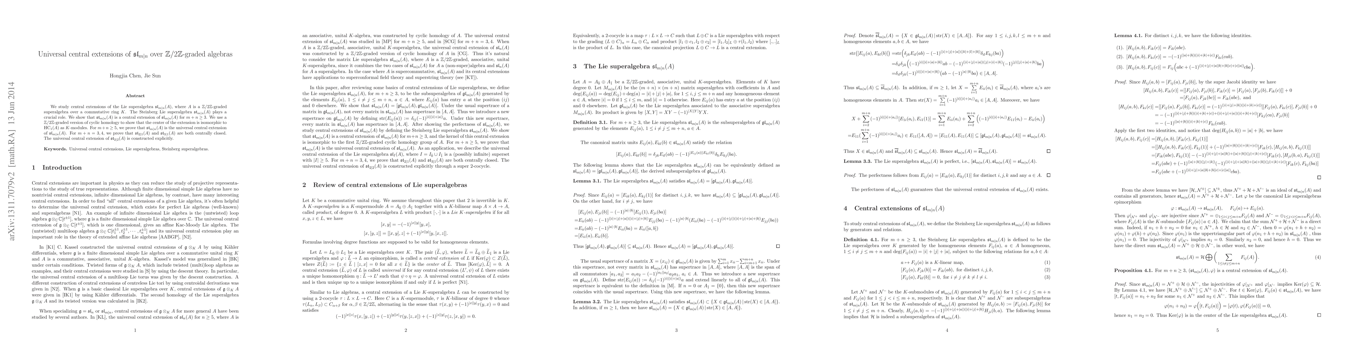 We study central extensions of the Lie superalgebra $sl_{m|n}(A)$, where $A$ is a $Z/2Z$-graded superalgebra over a commutative ring $K$. The Steinberg Lie superalgebra $st_{m|n}(A)$ plays a crucial role. We show that $st_{m|n}(A)$ is a central extension of $sl_{m|n}(A)$ for $m+n\geq 3$. We use a $Z/2Z$-graded version of cyclic homology to show that the center of the extension is isomorphic to $HC_1(A)$ as $K$-modules. For $m+n\geq 5$, we prove that $st_{m|n}(A)$ is the universal central extension of $sl_{m|n}(A)$. For $m+n=3,4$, we prove that $st_{2|1}(A)$ and $st_{3|1}(A)$ are both centrally closed. The universal central extension of $st_{2|2}(A)$ is constructed explicitly.