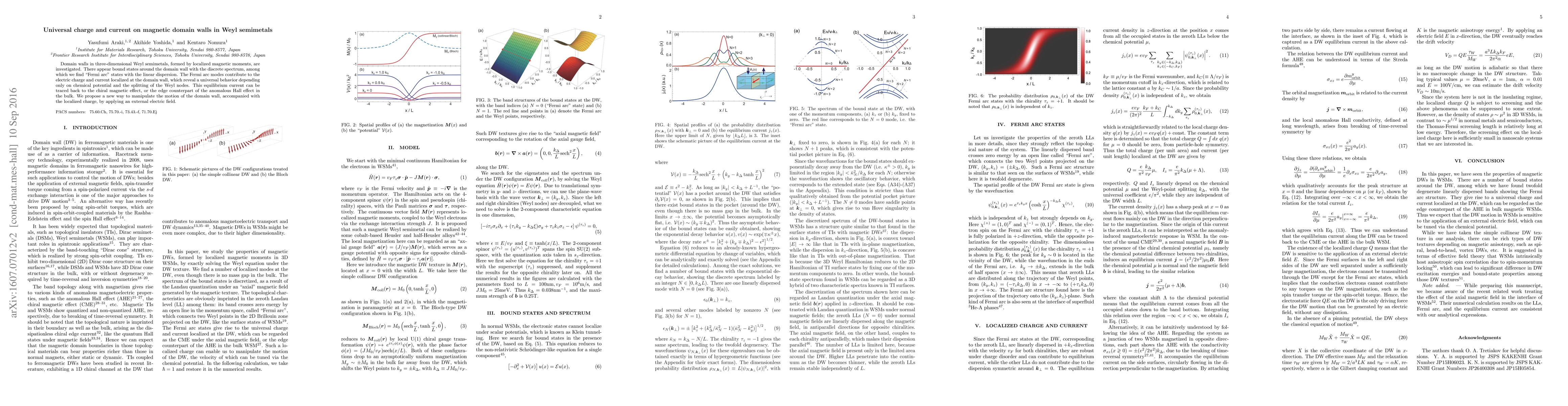 The study reveals that domain walls in Weyl semimetals host Fermi arc states contributing to universal charge and current, dependent solely on chemical potential and Weyl node splitting. This equilibrium current, linked to the chiral magnetic effect, suggests a method to manipulate domain wall motion via external electric fields.