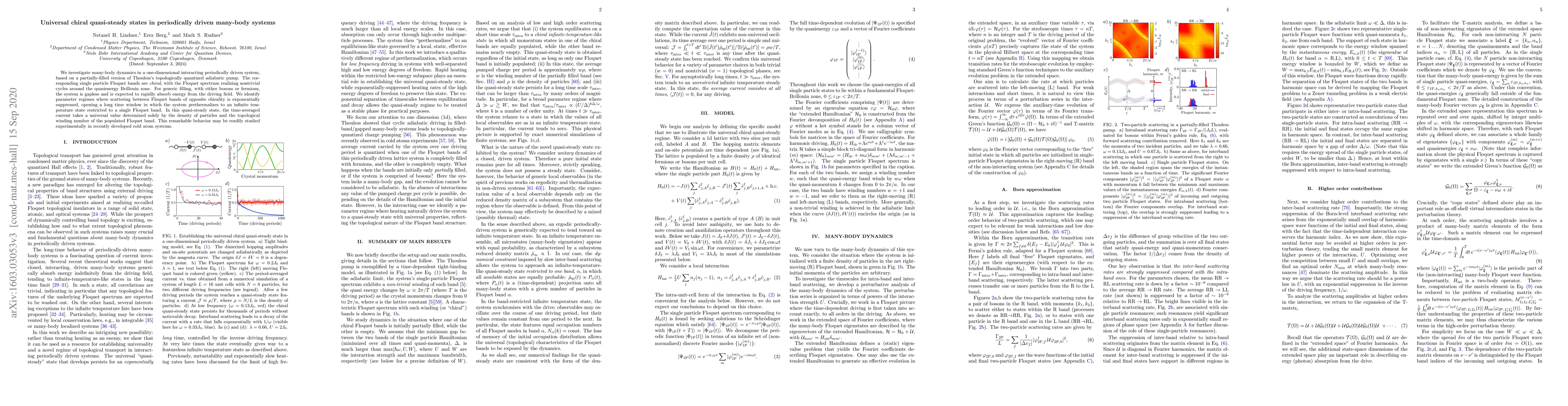 This paper explores the dynamics of periodically driven many-body systems, identifying regimes where the system prethermalizes to a quasi-steady state characterized by a universal current dependent on particle density and topological winding number. This behavior is observed in cold atom systems with chiral Floquet bands.
