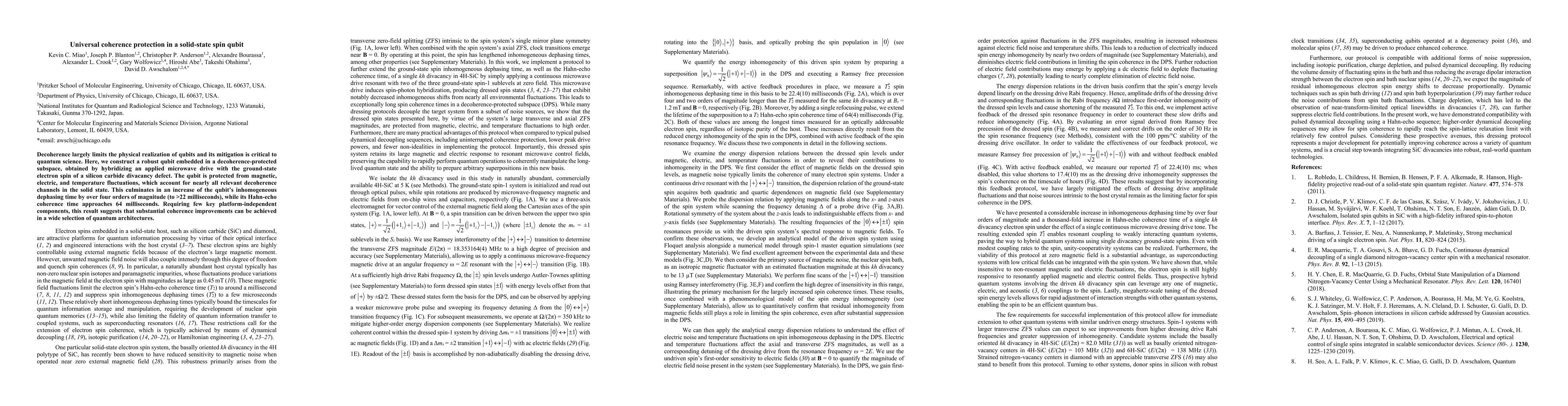 This paper presents a solid-state spin qubit in silicon carbide that is protected from decoherence through a hybridized subspace, significantly increasing its coherence time to over 22 milliseconds and demonstrating robustness against various environmental fluctuations. The approach suggests broad applicability for enhancing coherence in diverse quantum systems.