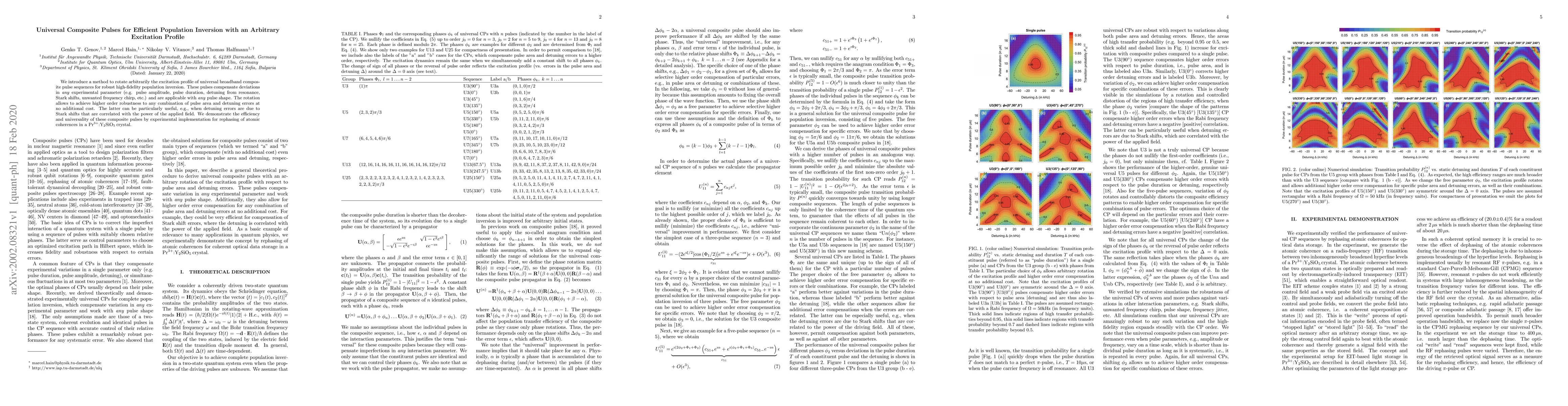 This paper presents a method for creating universal composite pulses that can rotate the excitation profile for high-fidelity population inversion, compensating for various experimental parameter deviations without additional cost, and demonstrating its effectiveness through experiments on atomic coherence rephasing in a $\text{Pr}^{3+}\text{:}\text{Y}_2\text{SiO}_5$ crystal.