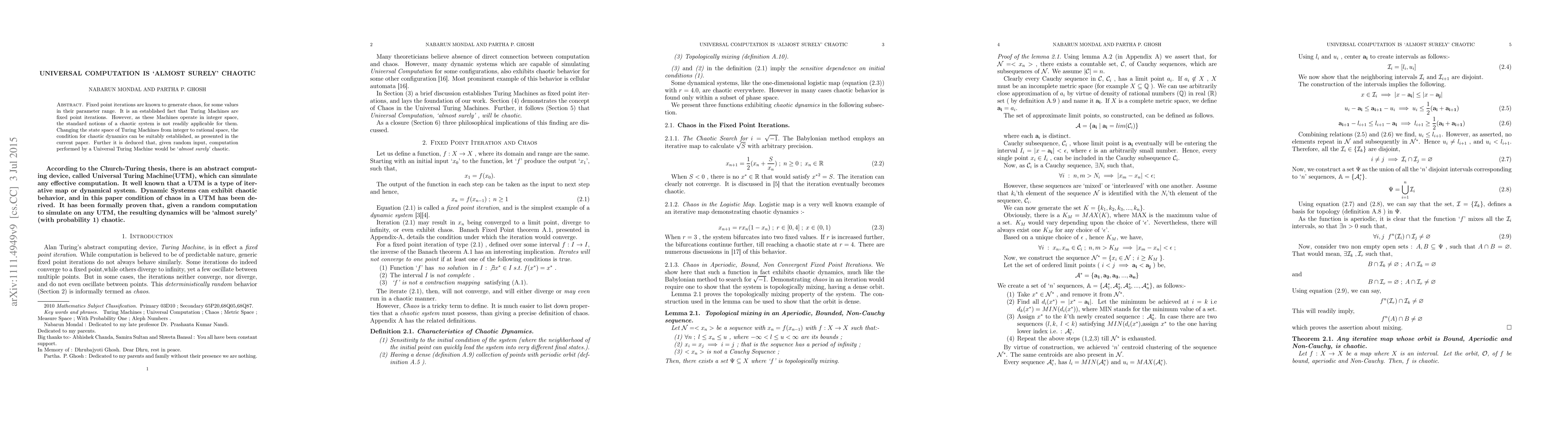 Fixed point iterations are known to generate chaos, for some values in their parameter range. It is an established fact that Turing Machines are fixed point iterations. However, as these Machines operate in integer space, the standard notions of a chaotic system is not readily applicable for them. Changing the state space of Turing Machines from integer to rational space, the condition for chaotic dynamics can be suitably established, as presented in the current paper. Further it is deduced that, given random input, computation performed by a Universal Turing Machine would be 'almost surely' chaotic.