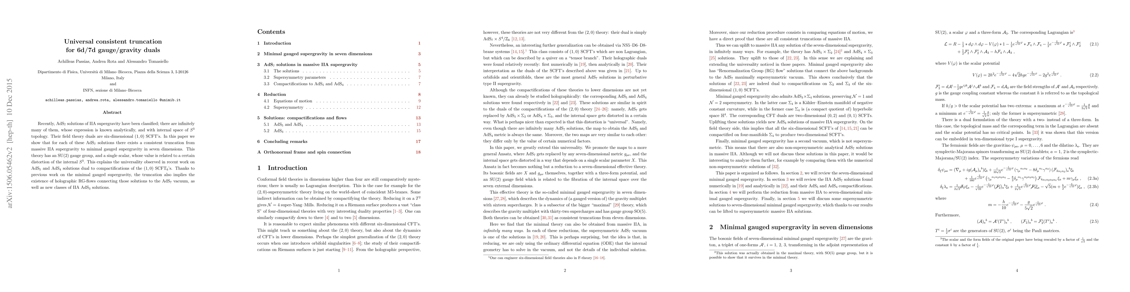 Recently, AdS_7 solutions of IIA supergravity have been classified; there are infinitely many of them, whose expression is known analytically, and with internal space of S^3 topology. Their field theory duals are six-dimensional (1,0) SCFT's. In this paper we show that for each of these AdS_7 solutions there exists a consistent truncation from massive IIA supergravity to minimal gauged supergravity in seven dimensions. This theory has an SU(2) gauge group, and a single scalar, whose value is related to a certain distortion of the internal S^3. This explains the universality observed in recent work on AdS_5 and AdS_4 solutions dual to compactifications of the (1,0) SCFT_6's. Thanks to previous work on the minimal gauged supergravity, the truncation also implies the existence of holographic RG-flows connecting those solutions to the AdS_7 vacuum, as well as new classes of IIA AdS_3 solutions.