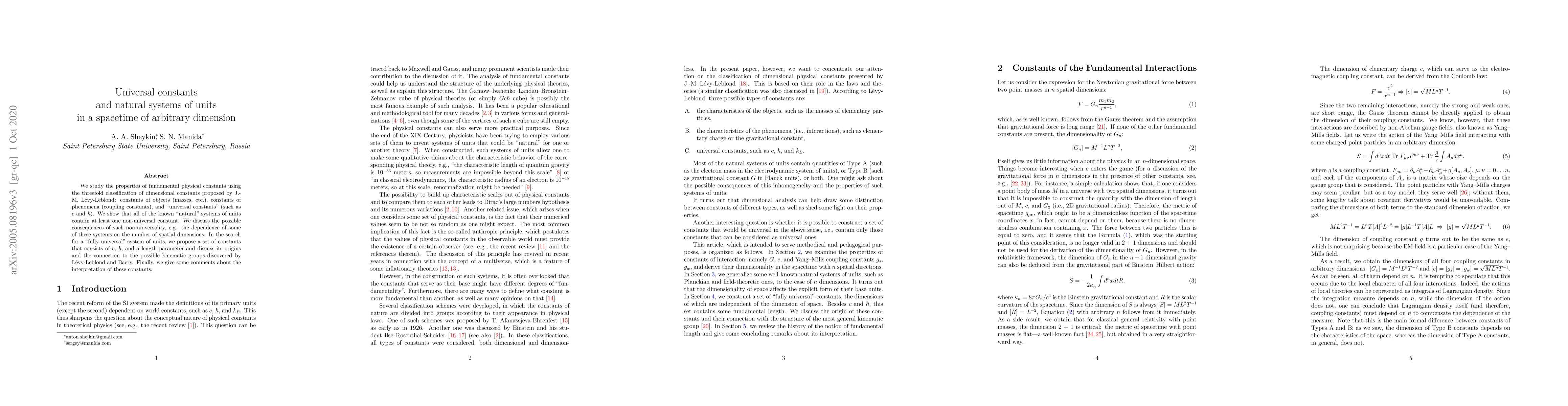 This paper explores the classification of fundamental physical constants and investigates the existence of "natural" systems of units that are fully universal. It proposes a set of universal constants including $c$, $\hbar$, and a length parameter, and discusses the implications of non-universal constants, such as their dependence on the number of spatial dimensions.