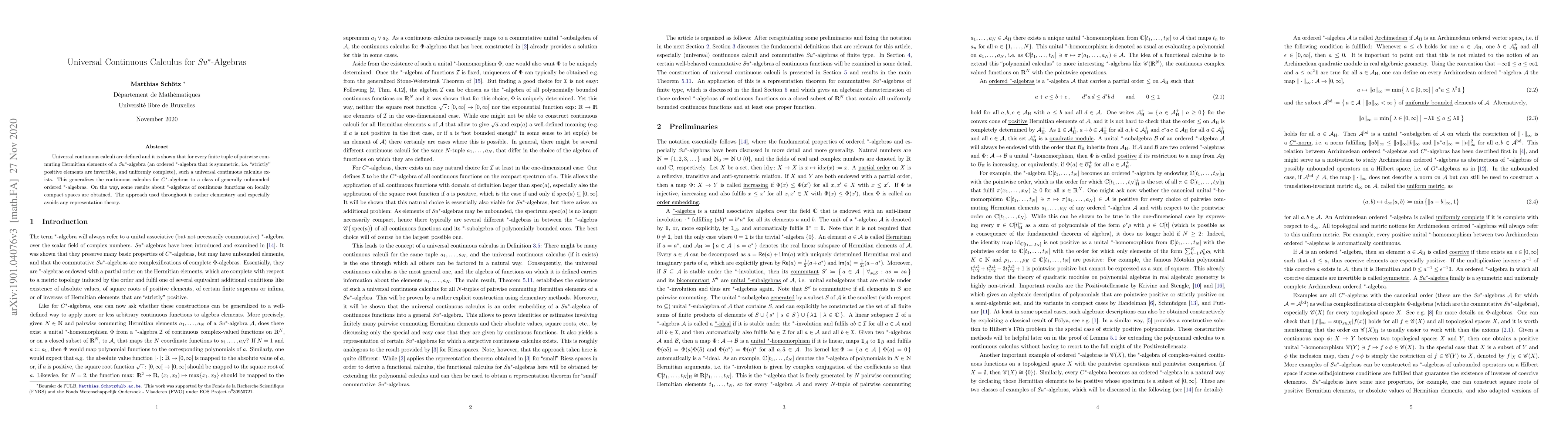 Universal continuous calculi are defined and it is shown that for every finite tuple of pairwise commuting Hermitian elements of a Su*-algebra (an ordered *-algebra that is symmetric, i.e. "strictly" positive elements are invertible, and uniformly complete), such a universal continuous calculus exists. This generalizes the continuous calculus for C*-algebras to a class of generally unbounded ordered *-algebras. On the way, some results about *-algebras of continuous functions on locally compact spaces are obtained. The approach used throughout is rather elementary and especially avoids any representation theory.