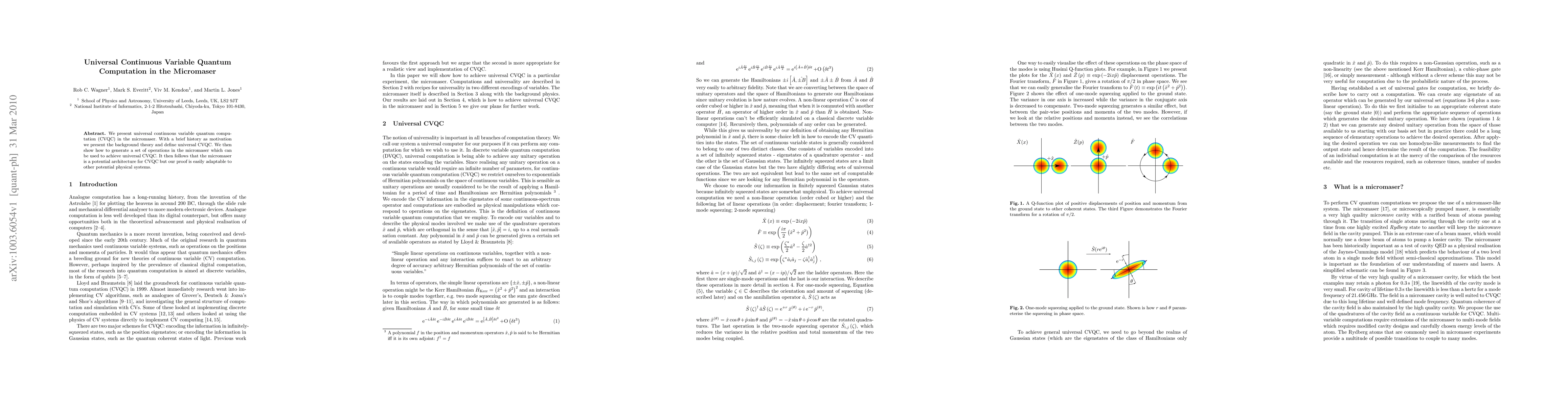 This paper demonstrates universal continuous variable quantum computation (CVQC) in a micromaser, outlining its theoretical background and operations, and suggesting the micromaser as a viable architecture for CVQC with potential adaptability to other systems.