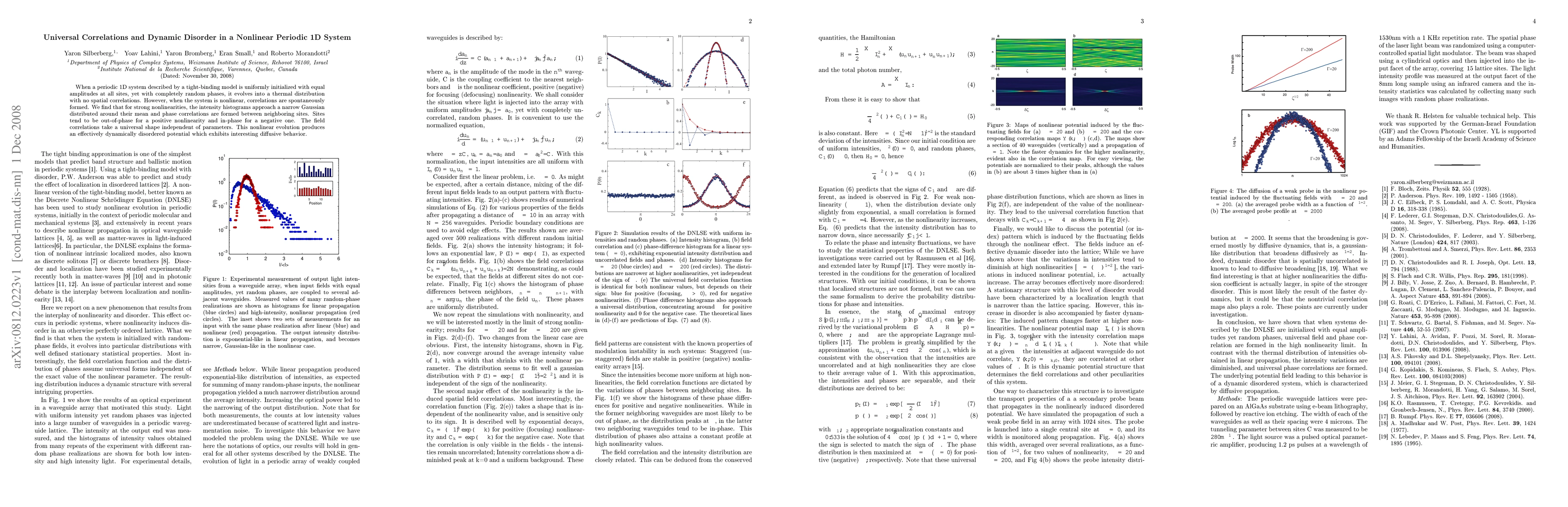 When a periodic 1D system described by a tight-binding model is uniformly initialized with equal amplitudes at all sites, yet with completely random phases, it evolves into a thermal distribution with no spatial correlations. However, when the system is nonlinear, correlations are spontaneously formed. We find that for strong nonlinearities, the intensity histograms approach a narrow Gaussian distributed around their mean and phase correlations are formed between neighboring sites. Sites tend to be out-of-phase for a positive nonlinearity and in-phase for a negative one. The field correlations take a universal shape independent of parameters. This nonlinear evolution produces an effectively dynamically disordered potential which exhibits interesting diffusive behavior.