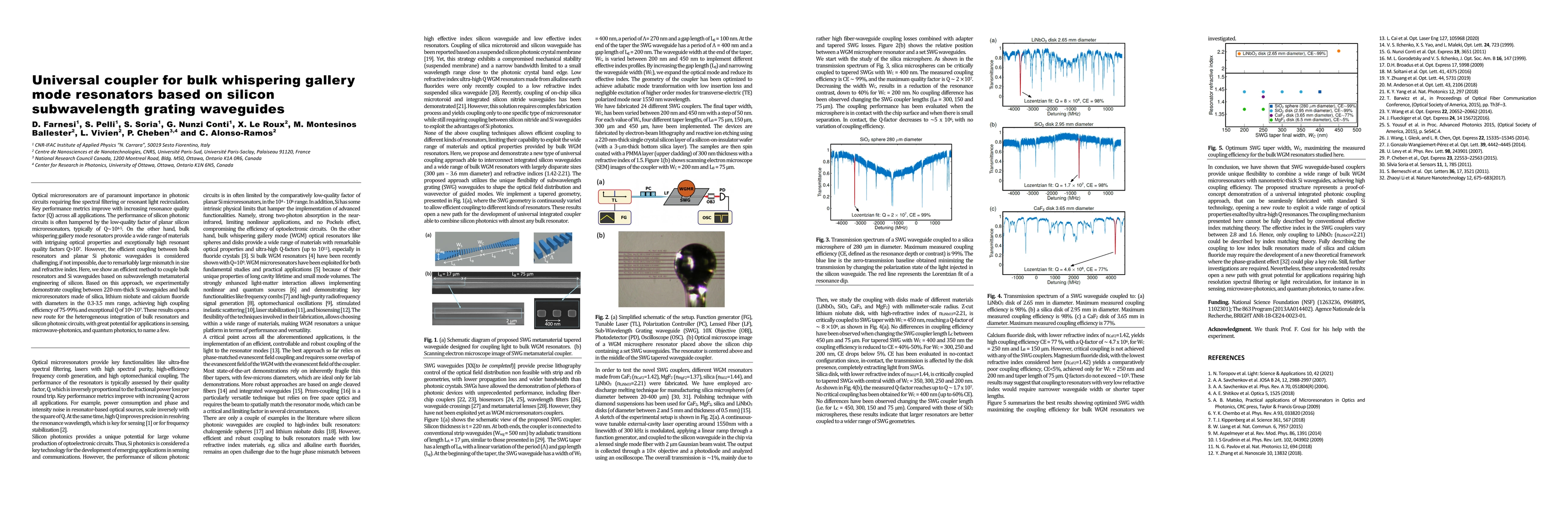 This paper presents a novel universal coupler for integrating bulk whispering gallery mode resonators with silicon photonic waveguides using subwavelength grating waveguides. The method achieves high coupling efficiency (75-99%) and exceptional quality factors (Q>10^7), enabling potential applications in sensing, microwave-photonics, and quantum photonics.