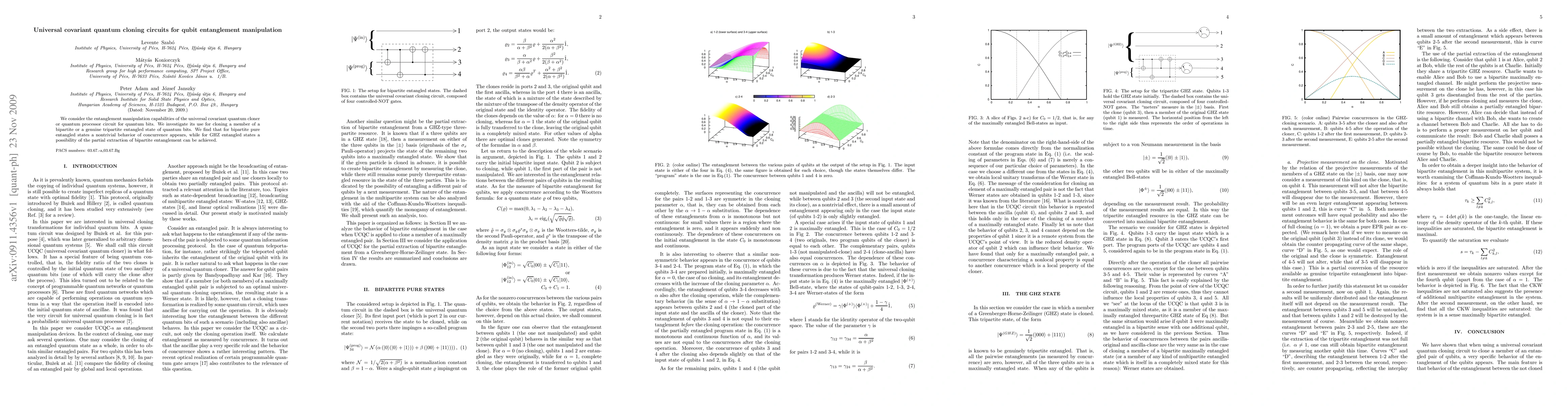 Universal covariant quantum cloning circuits enable manipulation of qubit entanglement, particularly showing nontrivial concurrence in bipartite pure entangled states and partial extraction of bipartite entanglement in GHZ entangled states.