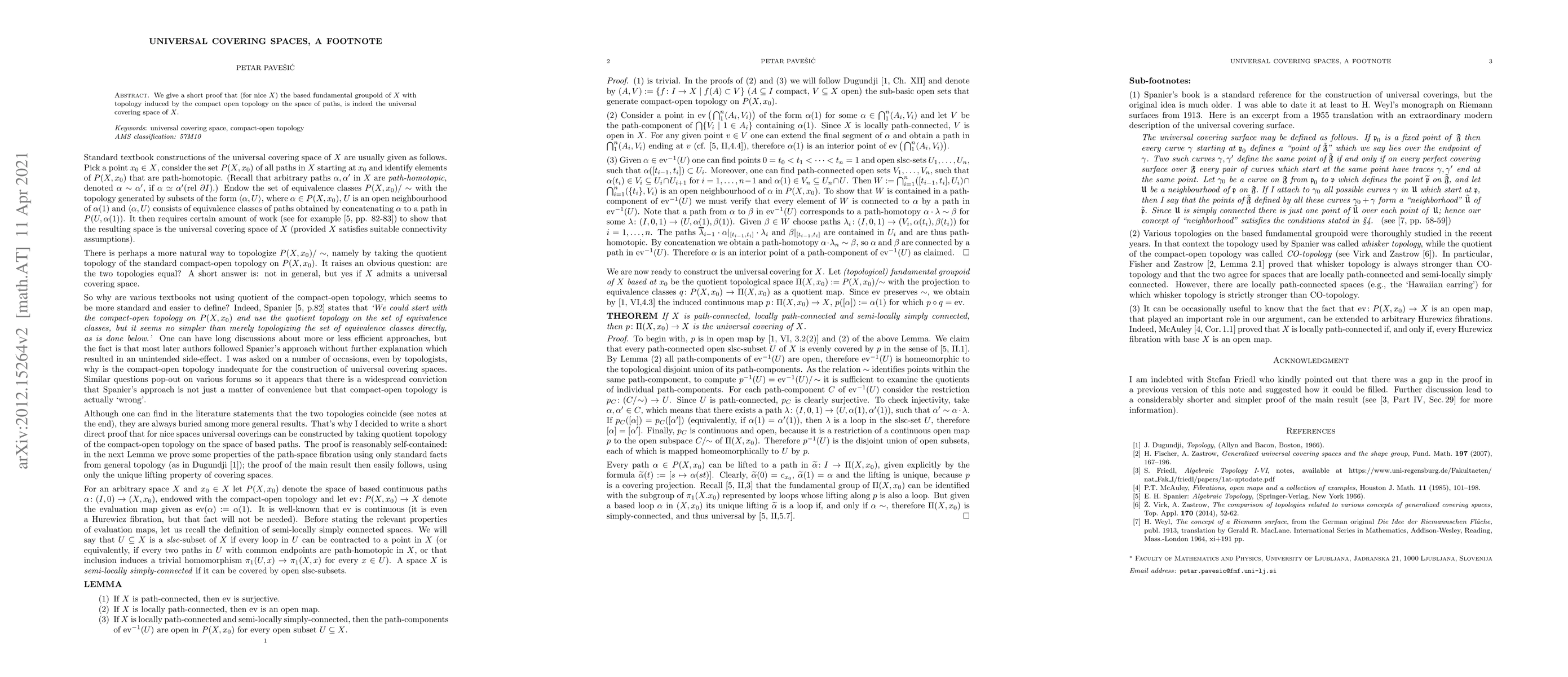 A recent study provides a concise proof that the based fundamental groupoid of a space X, with a specific topology, is its universal covering space.