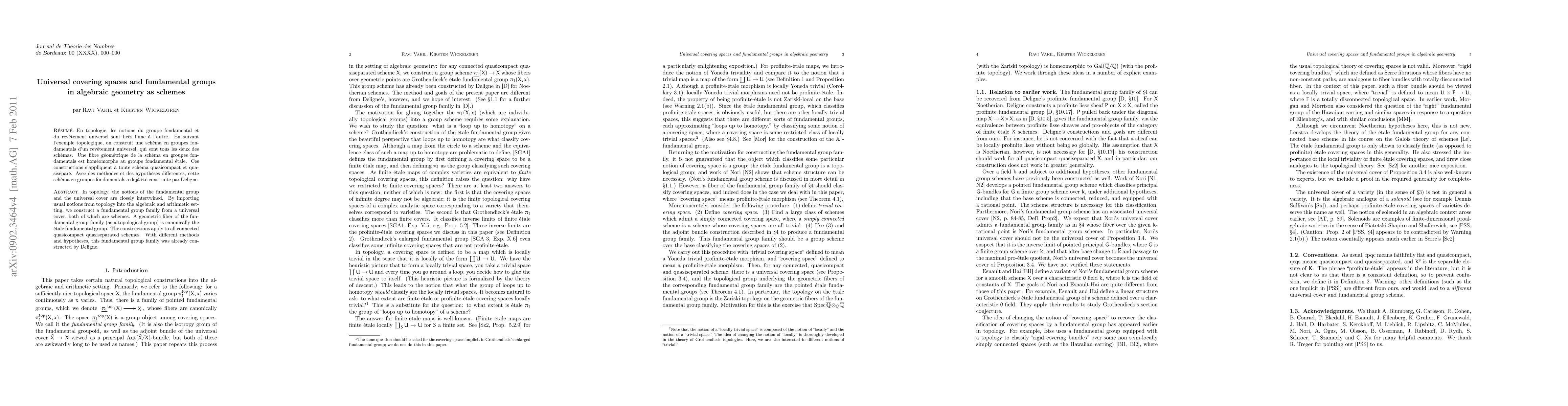 Researchers in algebraic geometry construct a fundamental group family from a universal cover, both as schemes, providing a geometric framework for studying etale fundamental groups.