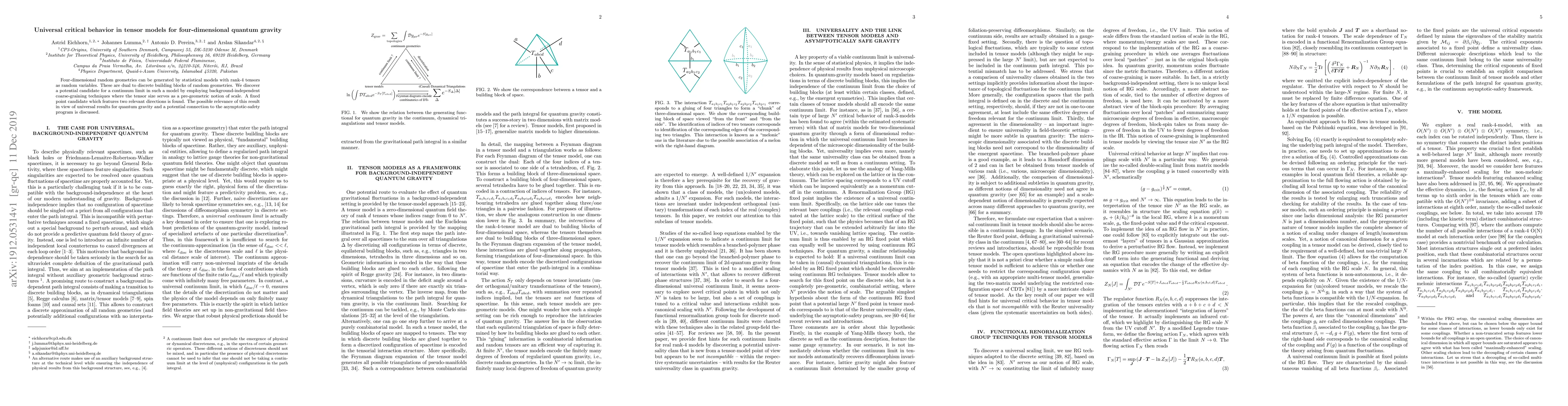 This paper identifies a potential continuum limit in tensor models for four-dimensional quantum gravity using background-independent coarse-graining techniques, revealing a fixed point with two relevant directions, which may have implications for universal critical behavior and the asymptotic-safety program in quantum gravity.