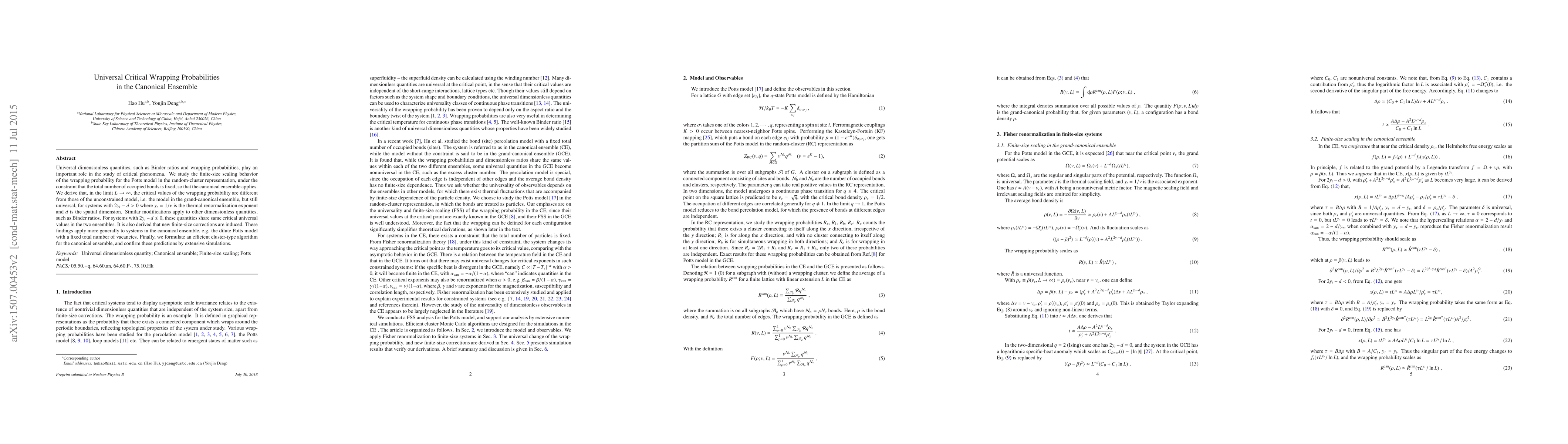 This paper investigates the finite-size scaling behavior of wrapping probabilities in the Potts model under the canonical ensemble, revealing universal critical values differing from those in the grand-canonical ensemble for certain conditions. The study also introduces new finite-size corrections and validates findings through simulations.