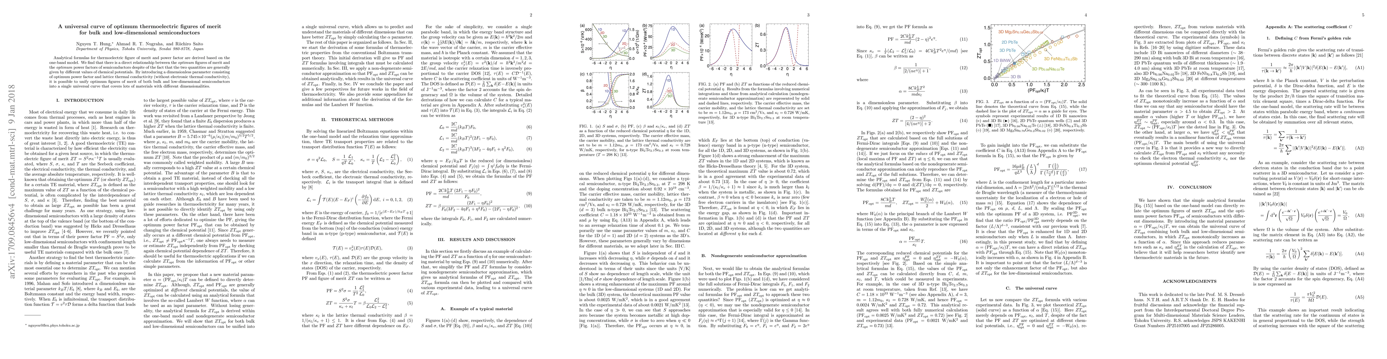 This paper derives analytical formulas for thermoelectric figures of merit and power factor, revealing a direct relationship between them. It introduces a dimensionless parameter to unify the optimum figures of merit of various semiconductors into a single universal curve, applicable to both bulk and low-dimensional materials.
