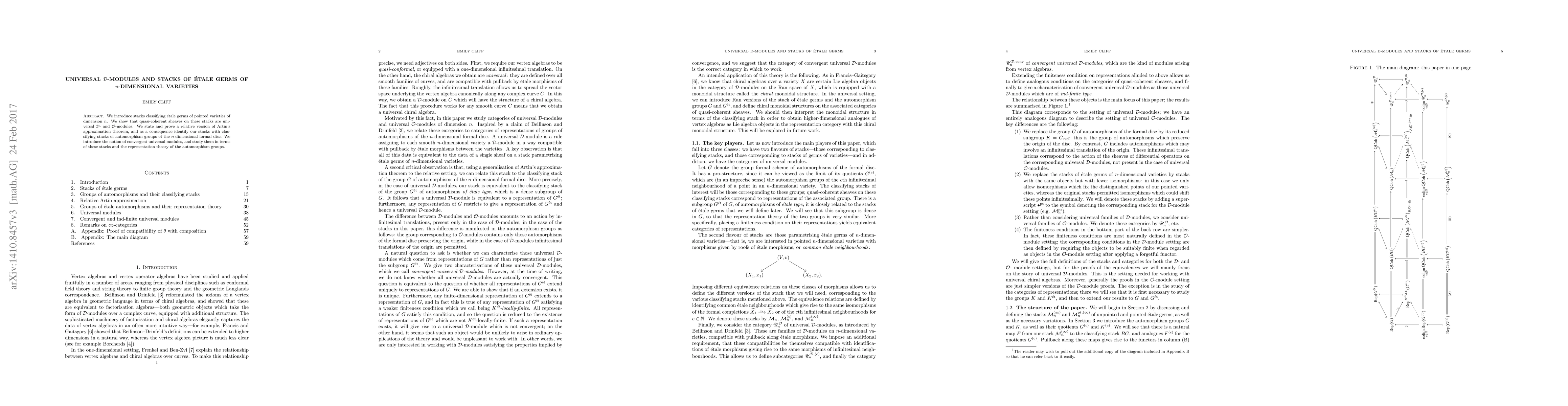 We introduce stacks classifying \'etale germs of pointed n-dimensional varieties. We show that quasi-coherent sheaves on these stacks are universal D- and O-modules. We state and prove a relative version of Artin's approximation theorem, and as a consequence identify our stacks with classifying stacks of automorphism groups of the n-dimensional formal disc. We introduce the notion of convergent universal modules, and study them in terms of these stacks and the representation theory of the automorphism groups.