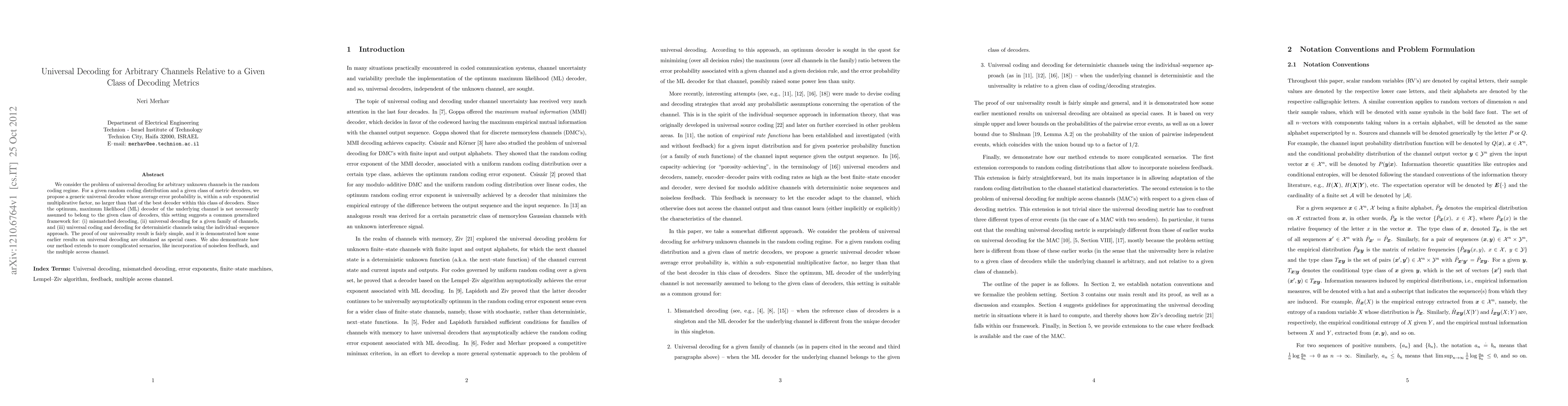 This paper proposes a universal decoder for arbitrary unknown channels relative to a given class of decoding metrics, ensuring that its average error probability is no worse than the best decoder within that class. The method applies to mismatched decoding, universal decoding for channel families, and universal coding/decoding for deterministic channels, demonstrating its generality and extending to scenarios with noiseless feedback and multiple access channels.