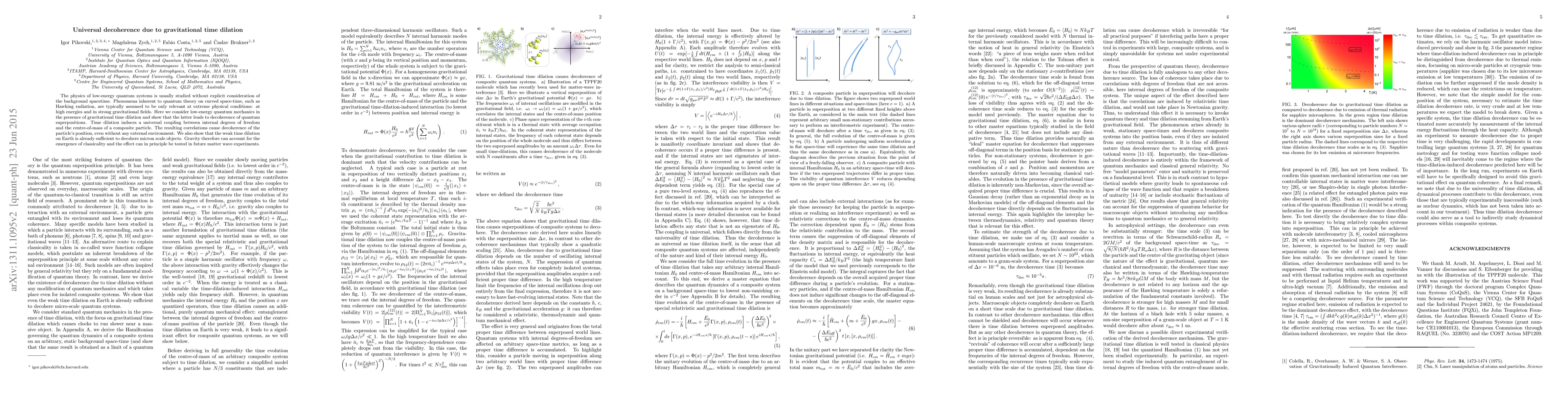 This paper demonstrates that gravitational time dilation can induce universal decoherence in low-energy quantum systems, leading to the emergence of classicality without external interactions. The study shows that even weak time dilation on Earth can decohere micron-scale objects, suggesting a potential testable effect in future matter wave experiments.