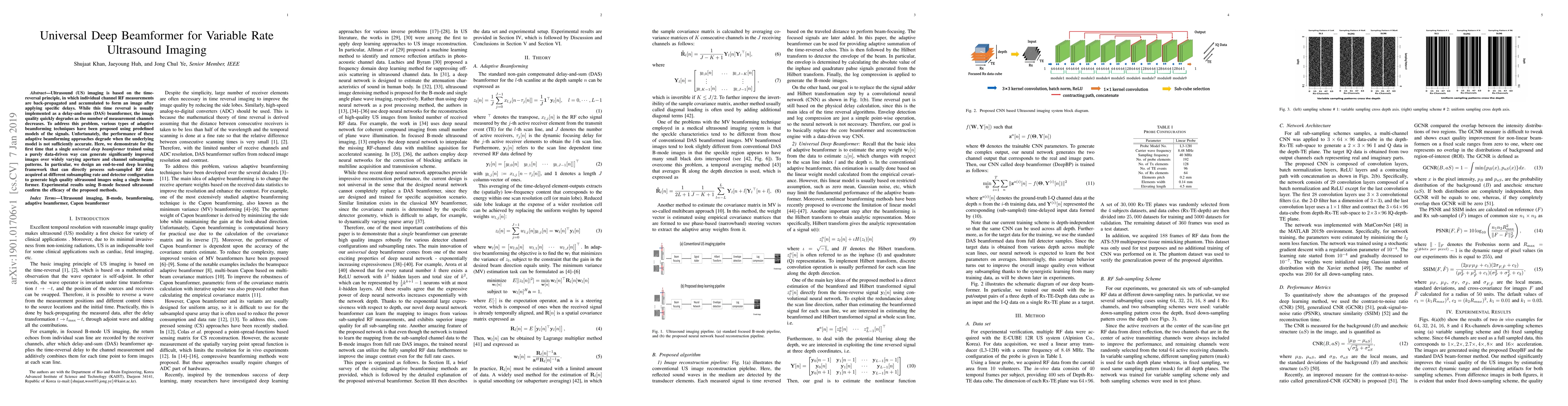 This paper introduces a universal deep beamformer for variable rate ultrasound imaging, demonstrating that a single, data-driven deep learning model can generate high-quality images across different subsampling rates and detector configurations, outperforming traditional adaptive beamforming methods. Experimental results confirm the method's effectiveness in producing improved B-mode focused ultrasound images.