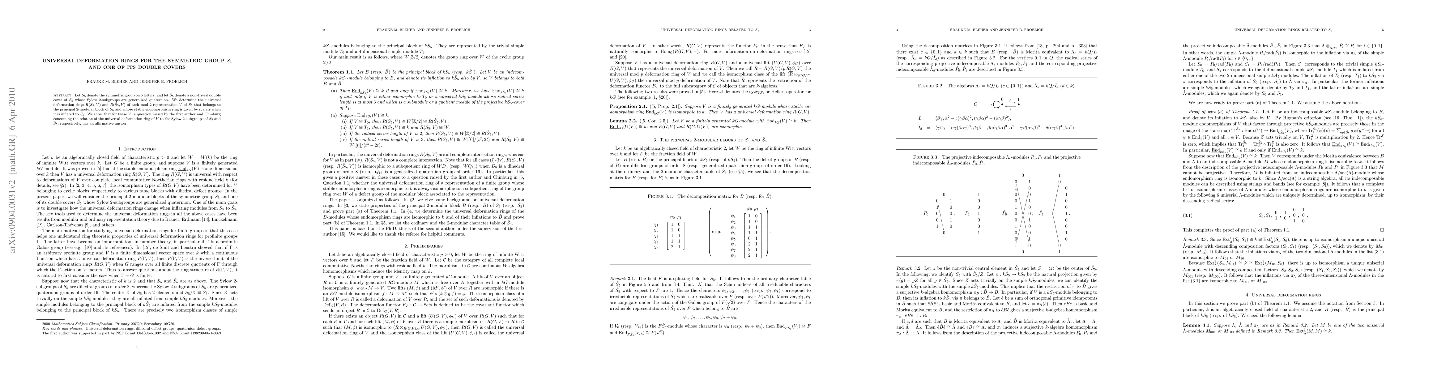 This paper investigates universal deformation rings for a symmetric group S_5 and its double cover, determining their relation to the Sylow 2-subgroups of both groups.