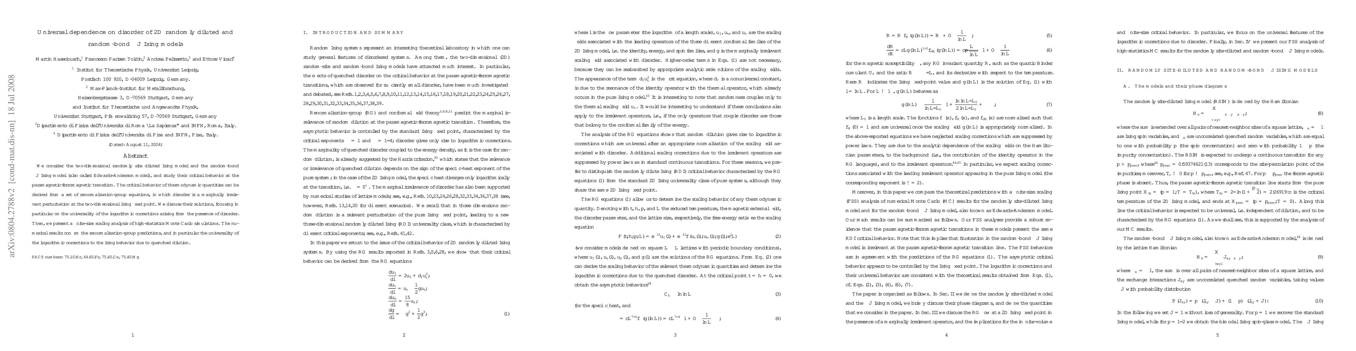 Researchers studied two types of models that exhibit critical behavior at a phase transition point due to disorder, confirming universality of logarithmic corrections in the presence of quenched dilution.