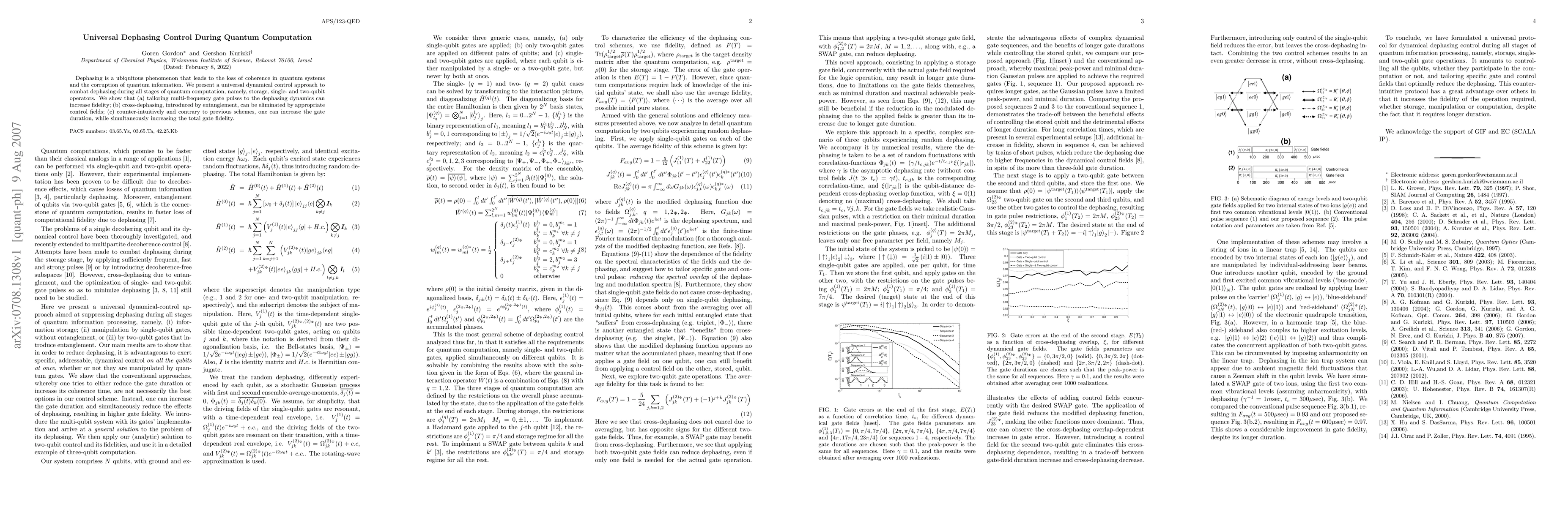 Dephasing is a ubiquitous phenomenon that leads to the loss of coherence in quantum systems and the corruption of quantum information. We present a universal dynamical control approach to combat dephasing during all stages of quantum computation, namely, storage, single- and two-qubit operators. We show that (a) tailoring multi-frequency gate pulses to the dephasing dynamics can increase fidelity; (b) cross-dephasing, introduced by entanglement, can be eliminated by appropriate control fields; (c) counter-intuitively and contrary to previous schemes, one can increase the gate duration, while simultaneously increasing the total gate fidelity.