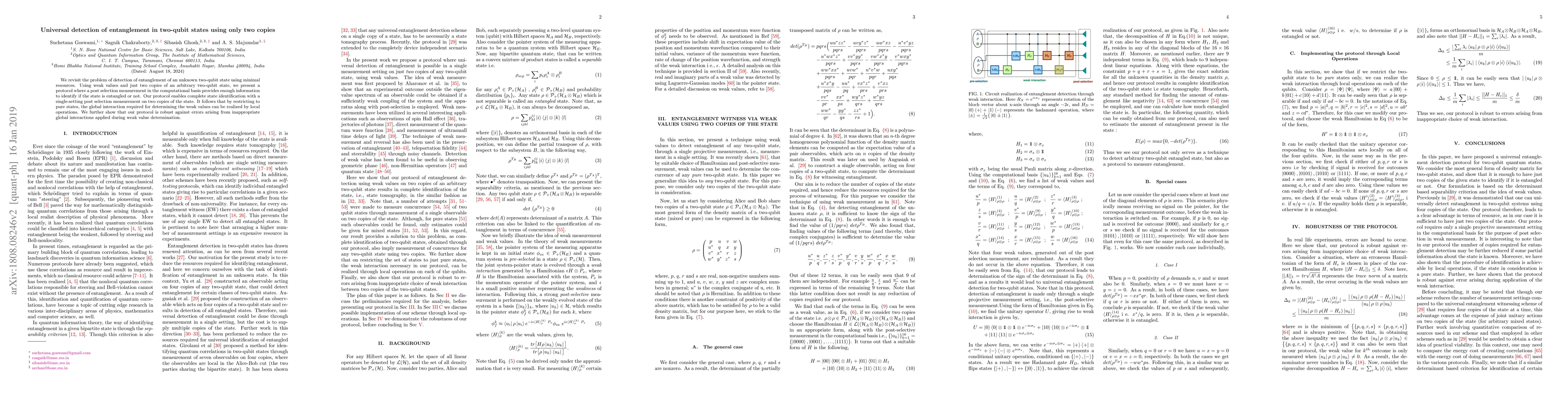 Researchers develop a protocol to detect entanglement in two-qubit states using only two copies of an arbitrary state and a single post-selection measurement, enabling complete state identification with minimal resources.