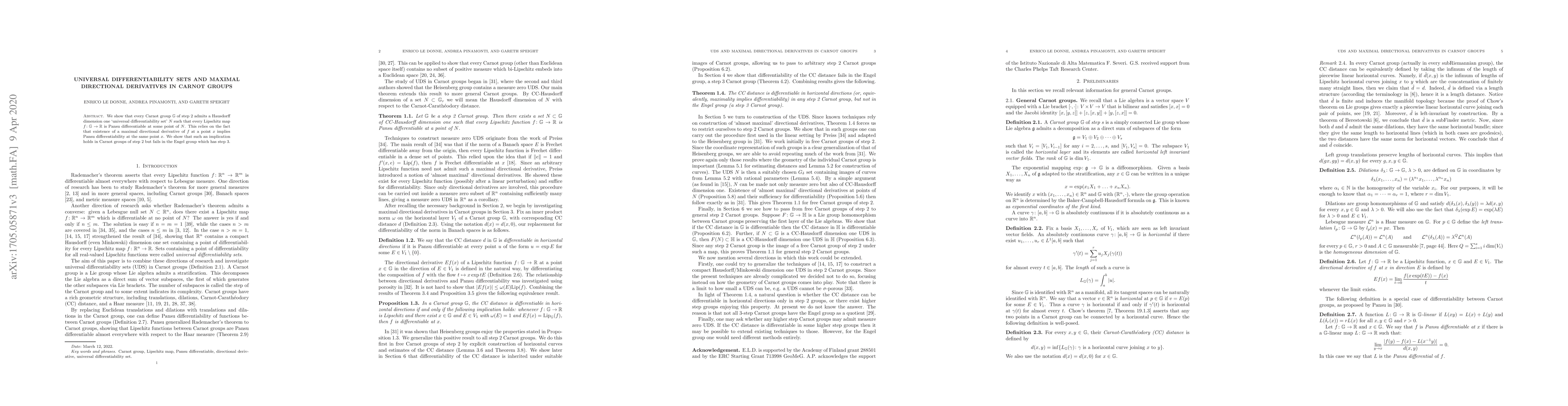 Summary: The paper establishes the existence of a "universal differentiability set" in Carnot groups of step 2 where every Lipschitz map is Pansu differentiable, relying on the existence of maximal directional derivatives, a property that holds for step 2 but not for step 3 Engel groups.