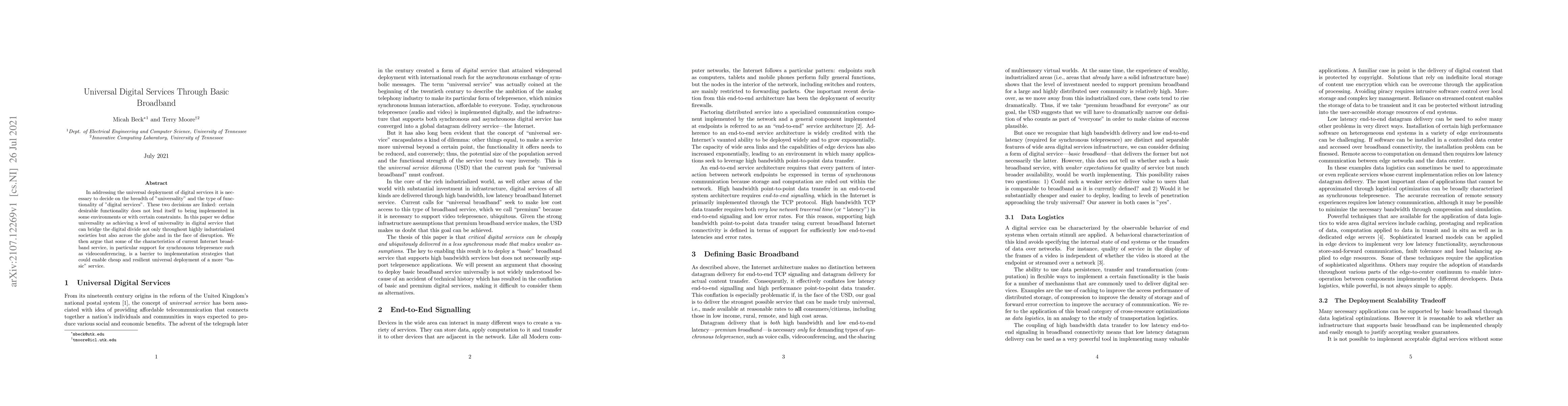 A paper argues that current internet broadband services hinder universal digital service deployment due to synchronous telepresence requirements. It proposes a new definition of universality that bridges the digital divide globally and in disruptive environments.