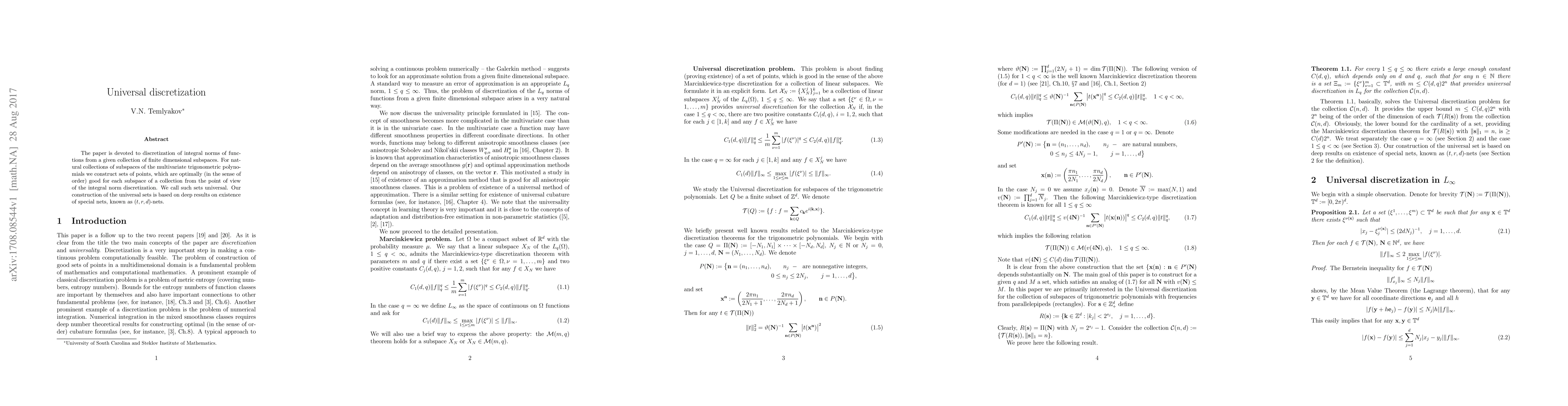The paper develops methods for discretizing integral norms of functions from finite-dimensional subspaces, focusing on constructing optimal sets of points for multivariate trigonometric polynomials. These sets, termed universal, are based on the existence of special nets known as (t,r,d)-nets.