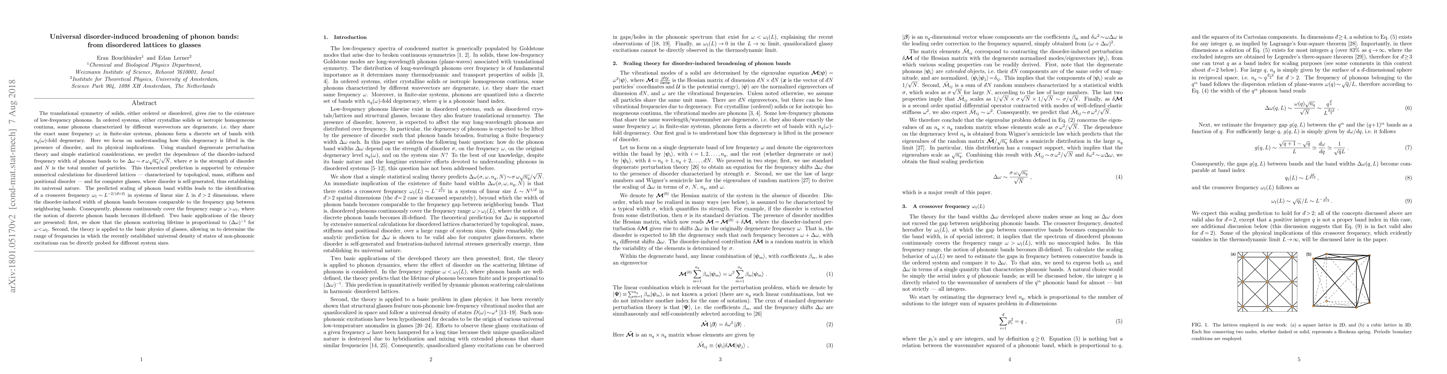 Researchers study how disorder affects phonon bands in solids, predicting a universal scaling law for frequency width and implications for phonon scattering lifetime and glass physics applications.