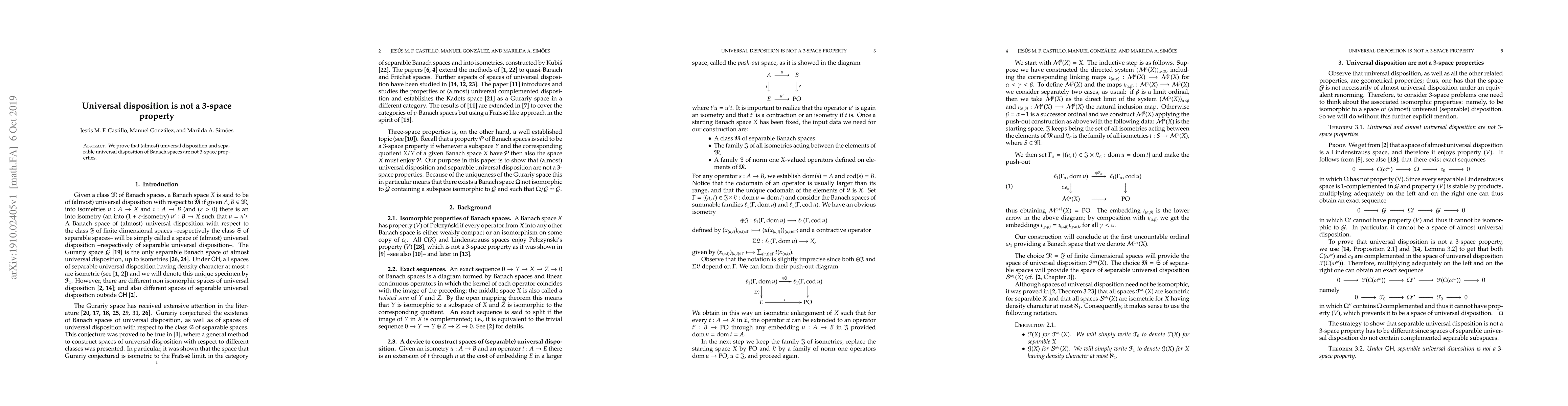 We prove that (almost) universal disposition and separable universal disposition of Banach spaces are not $3$-space properties.