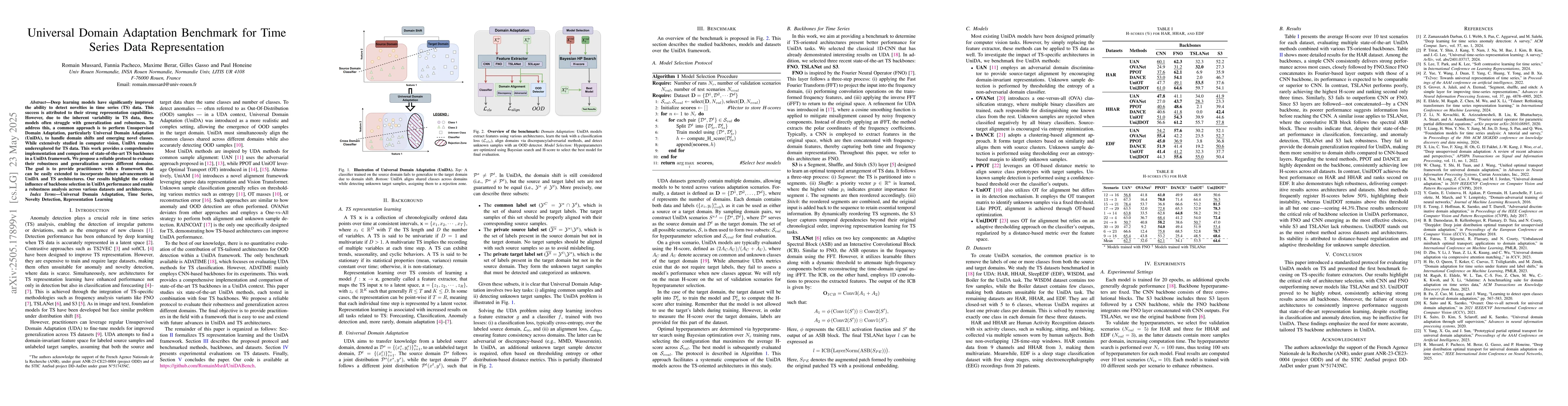 Deep learning models have significantly improved the ability to detect novelties in time series (TS) data. This success is attributed to their strong representation capabilities. However, due to the inherent variability in TS data, these models often struggle with generalization and robustness. To address this, a common approach is to perform Unsupervised Domain Adaptation, particularly Universal Domain Adaptation (UniDA), to handle domain shifts and emerging novel classes. While extensively studied in computer vision, UniDA remains underexplored for TS data. This work provides a comprehensive implementation and comparison of state-of-the-art TS backbones in a UniDA framework. We propose a reliable protocol to evaluate their robustness and generalization across different domains. The goal is to provide practitioners with a framework that can be easily extended to incorporate future advancements in UniDA and TS architectures. Our results highlight the critical influence of backbone selection in UniDA performance and enable a robustness analysis across various datasets and architectures.