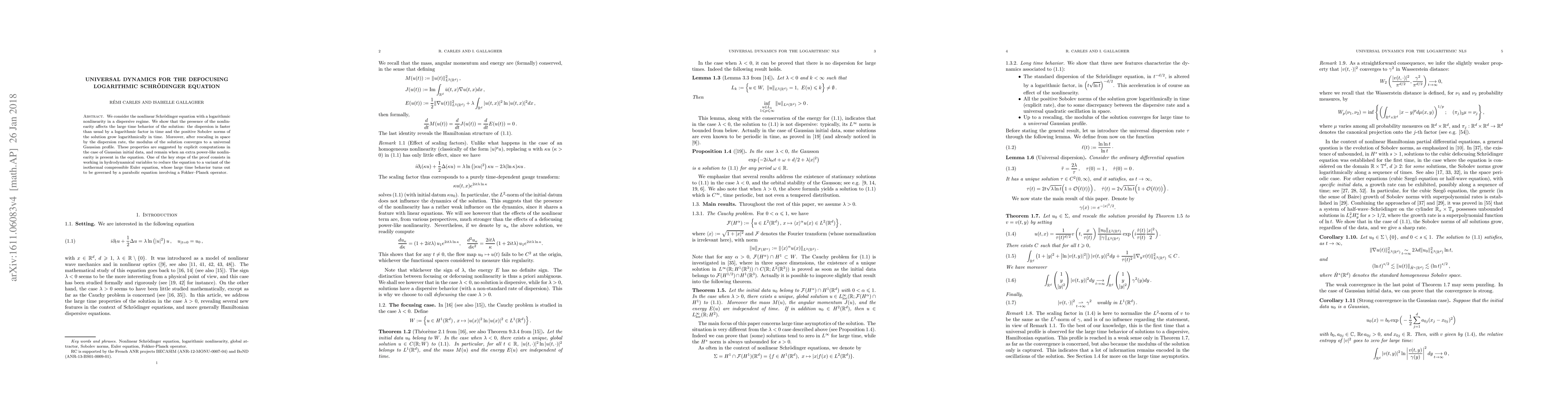 We consider the nonlinear Schrodinger equation with a logarithmic nonlinearity in a dispersive regime. We show that the presence of the nonlinearity affects the large time behavior of the solution: the dispersion is faster than usual by a logarithmic factor in time and the positive Sobolev norms of the solution grow logarithmically in time. Moreover, after rescaling in space by the dispersion rate, the modulus of the solution converges to a universal Gaussian profile. These properties are suggested by explicit computations in the case of Gaussian initial data, and remain when an extra power-like nonlinearity is present in the equation. One of the key steps of the proof consists in using the Madelung transform to reduce the equation to a variant of the isothermal compressible Euler equation, whose large time behavior turns out to be governed by a parabolic equation involving a Fokker-Planck operator.