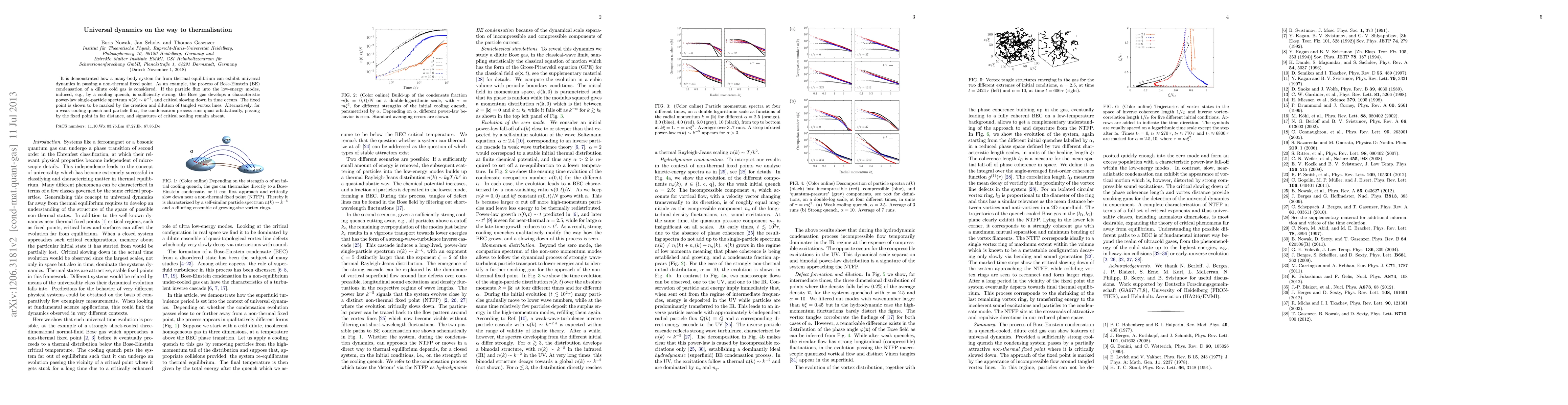 It is demonstrated how a many-body system far from thermal equilibrium can exhibit universal dynamics in passing a non-thermal fixed point. As an example, the process of Bose-Einstein (BE) condensation of a dilute cold gas is considered. If the particle flux into the low-energy modes, induced, e.g., by a cooling quench, is sufficiently strong, the Bose gas develops a characteristic power-law single-particle spectrum $n(k)\sim k^{-5}$, and critical slowing down in time occurs. The fixed point is shown to be marked by the creation and dilution of tangled vortex lines. Alternatively, for a weak cooling quench and particle flux, the condensation process runs quasi adiabatically, passing by the fixed point in far distance, and signatures of critical scaling remain absent.