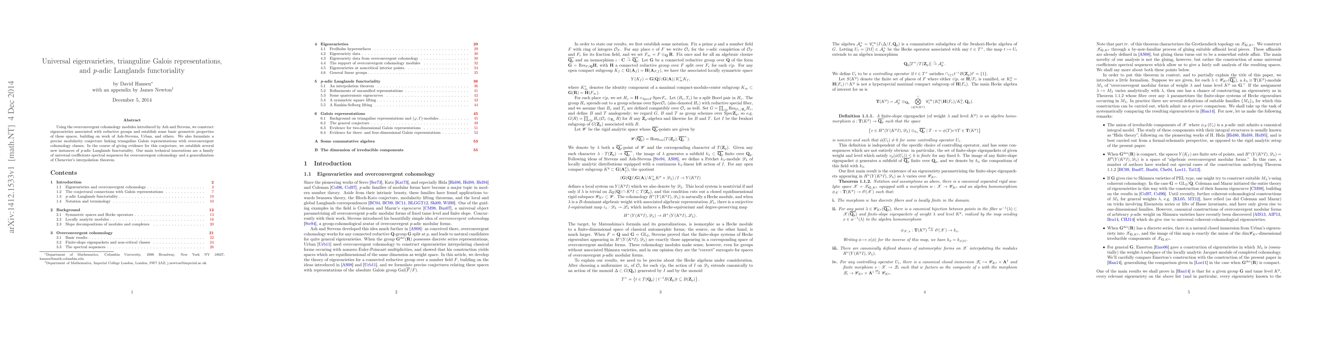 The paper constructs eigenvarieties using overconvergent cohomology modules and establishes basic geometric properties. It also formulates a modularity conjecture linking trianguline Galois representations to these cohomology classes and provides evidence through new instances of p-adic Langlands functoriality, utilizing spectral sequences and interpolation theorems.