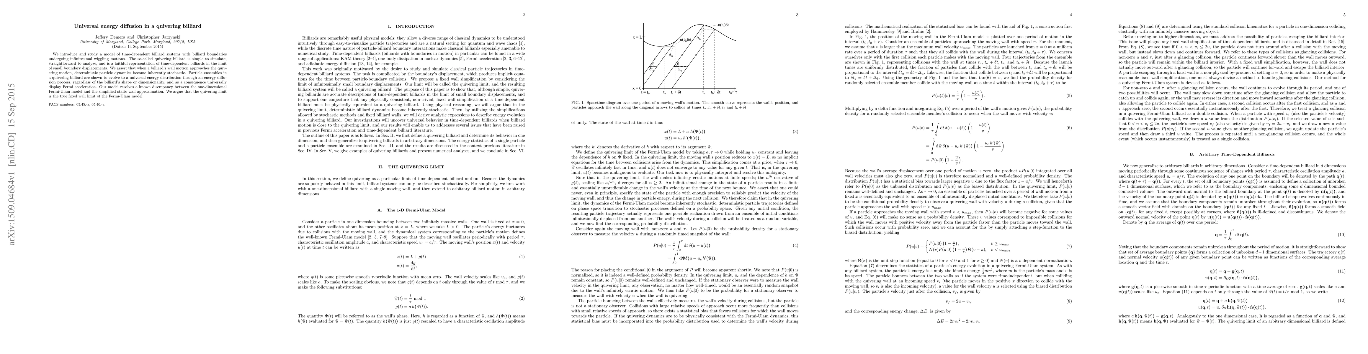 We introduce and study a model of time-dependent billiard systems with billiard boundaries undergoing infinitesimal wiggling motions. The so-called quivering billiard is simple to simulate, straightforward to analyze, and is a faithful representation of time-dependent billiards in the limit of small boundary displacements. We assert that when a billiard's wall motion approaches the quivering motion, deterministic particle dynamics become inherently stochastic. Particle ensembles in a quivering billiard are shown to evolve to a universal energy distribution through an energy diffusion process, regardless of the billiard's shape or dimensionality, and as a consequence universally display Fermi acceleration. Our model resolves a known discrepancy between the one-dimensional Fermi-Ulam model and the simplified static wall approximation. We argue that the quivering limit is the true fixed wall limit of the Fermi-Ulam model.