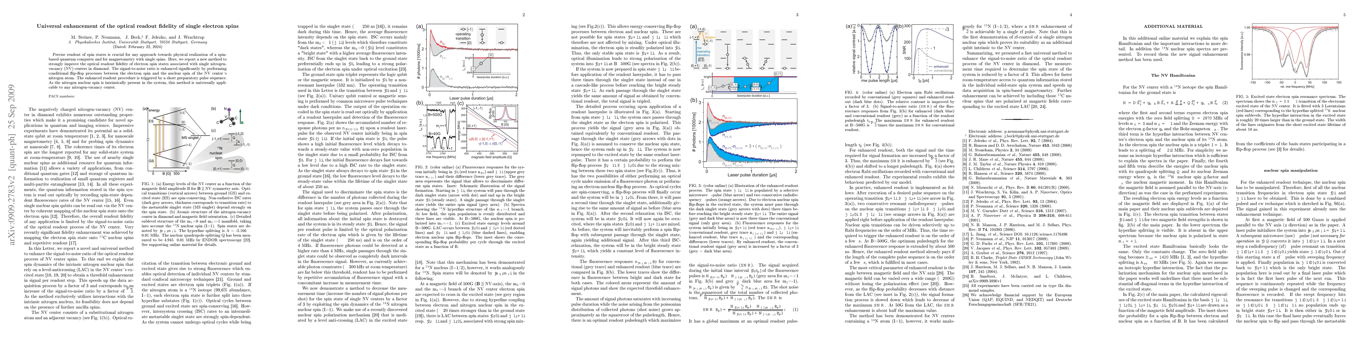 This paper presents a novel method to significantly enhance the optical readout fidelity of single electron spins in nitrogen-vacancy centers in diamond by utilizing conditional flip-flop processes between the electron spin and the intrinsic nitrogen nuclear spin, triggered by a preparatory pulse sequence. This universally applicable technique improves the signal-to-noise ratio for quantum computing and magnetometry applications.