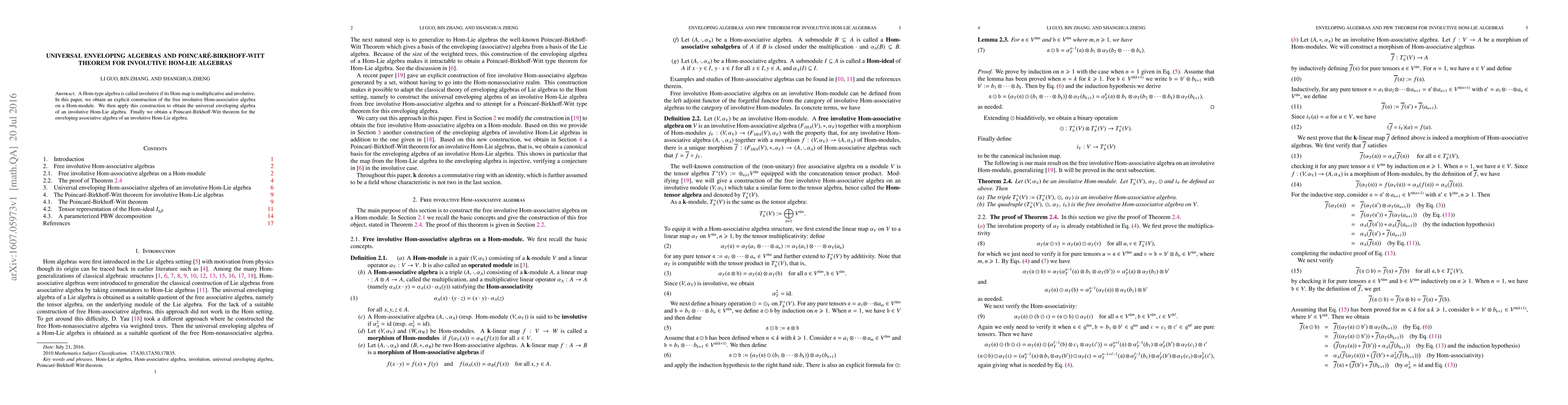A Hom-type algebra is called involutive if its Hom map is multiplicative and involutive. In this paper, we obtain an explicit construction of the free involutive Hom-associative algebra on a Hom-module. We then apply this construction to obtain the universal enveloping algebra of an involutive Hom-Lie algebra. Finally we obtain a Poincar\'e-Birkhoff-Witt theorem for the enveloping associative algebra of an involutive Hom-Lie algebra.