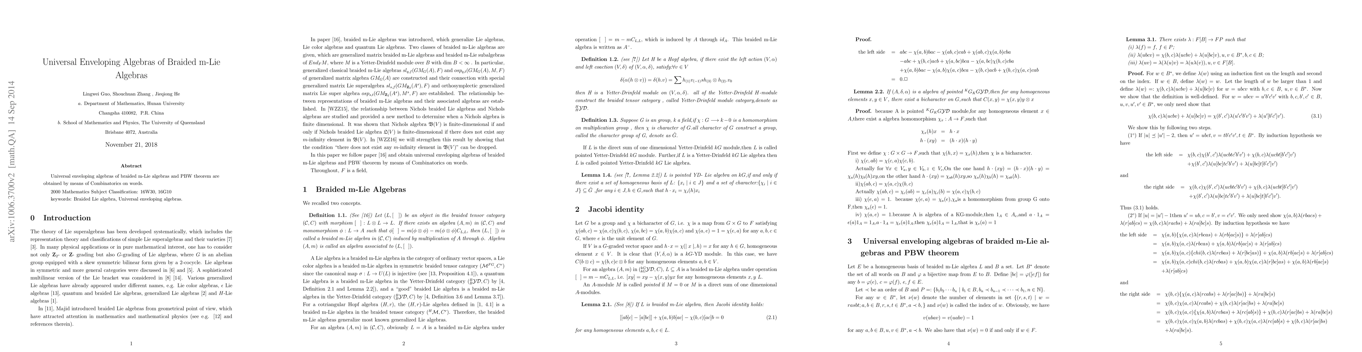 This paper explores the universal enveloping algebras of braided m-Lie algebras, establishing a PBW theorem through combinatorial techniques on words, thereby providing a new framework for understanding these algebraic structures.
